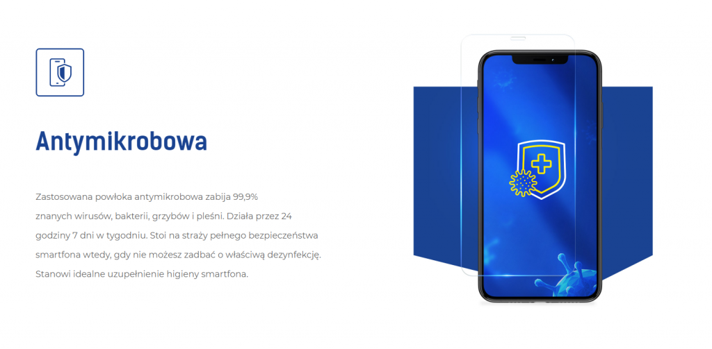 W folii zastosowano powłokę antymikrobową, która ma zabijać 99,9% znanych wirusów, bakterii, grzybów i pleśni. Ma to zadbać o higienę naszego smartfona przez 24 godziny 7 dni w tygodniu. Dodatkowo umieszczono powłokę samoregenerującą, która powinna naprawiać drobne uszkodzenia i zarysowania. A co z koronawirusem SaRS-CoV-2? Czy SilverProtection ochroni nas w trakcie tej pandemii? Niestety, póki co producent nie może jednoznacznie tego określić, jednak prowadzone są badania, które mają odpowiedzieć na to pytanie.