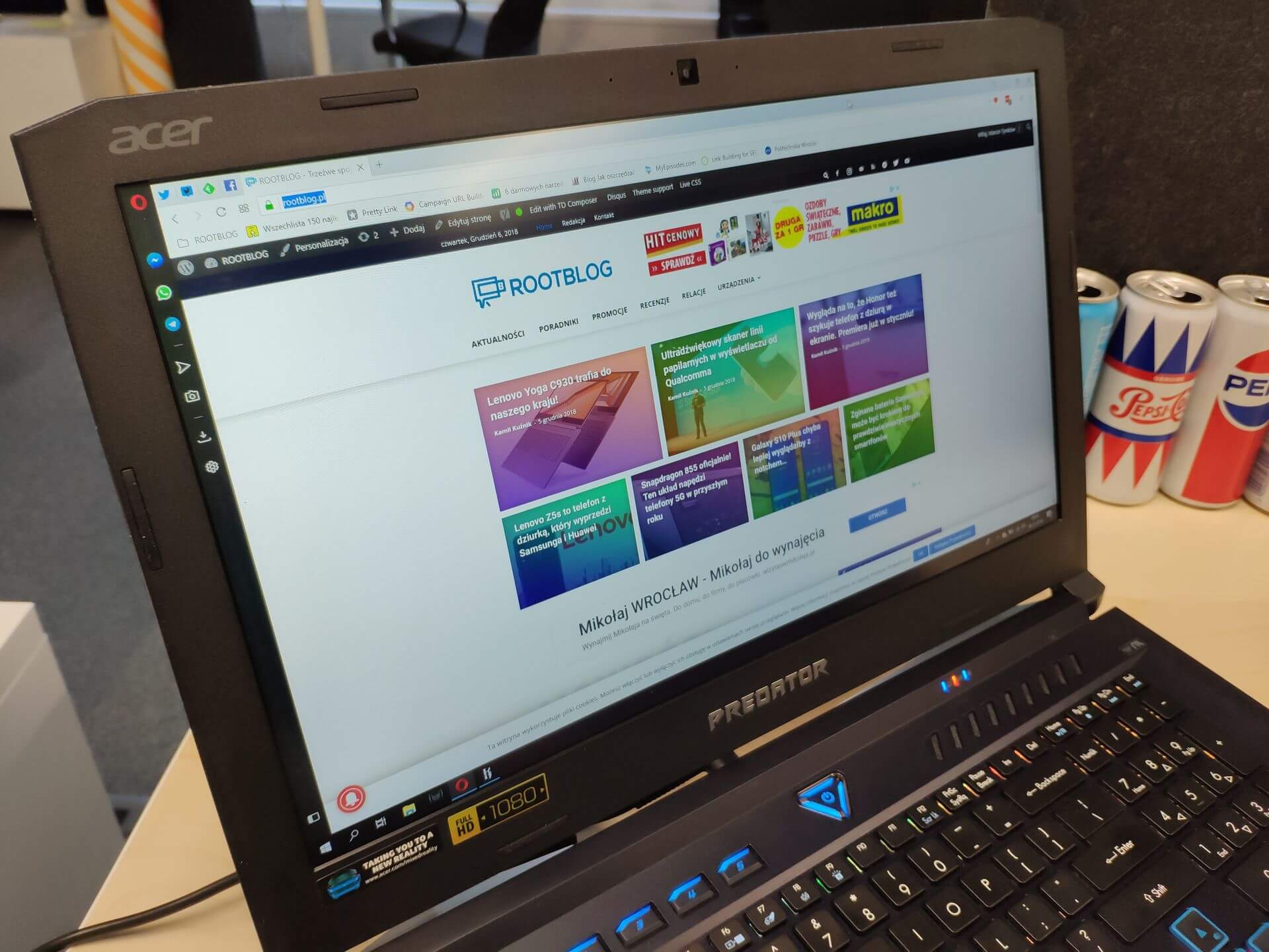 Gamingowy laptop Acer to naprawdę sporych rozmiarów urządzenie. Na początku myślałem, że będę mógł go używać jako laptopa do pracy, jednakże gdy do mnie przyszedł okazało się, że w domu nie mam żadnego plecaka ani torby, która by go zmieściła. Wszedł mi tylko do walizki podróżnej oraz torby sportowej, więc uznałem, że zostanie w domu jako sprzęt gamingowo-domowy na czas testów. Oczywiście od razu dostałem informację od Acera, że dostępny jest na niego dedykowany plecak, ale już było za późno na wysyłanie go, więc obyłem się bez dodatku.