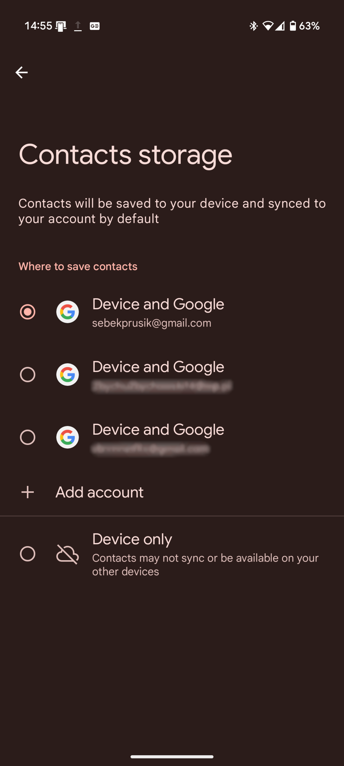 W ustawieniach aplikacji pojawiła się nowa sekcja Zapisywanie kontaktów, w której możemy wybrać gdzie zapisywane są nowe kontakty. Na swoim urządzeniu widzę do wyboru wszystkie konta Google, które są zalogowane na tym urządzeniu, ale możemy też wybrać zapis kontaktów lokalnie na urządzeniu.