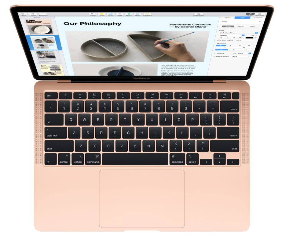 Przede wszystkim zacznijmy od tego, że nowe laptopy Apple nawet w podstawowym wariancie zostały wyposażone w dysk SSD o pojemności minimum 256 GB. Podstawowy wariant kosztuje 4999 zł, ale w cenie tej otrzymujemy konfigurację, która w poprzedniej generacji była zdecydowanie droższa. Nowy MacBook Air został wyposażony w ekran Retina o przekątnej 13,3 cala oraz rozdzielczości 2560 x 1600 pikseli. Wyświetlany obraz ma zachwycać swoją ostrością, a technologia True Tone automatycznie dostosowuje temperaturę barwową do sytuacji. Według zapewnień Apple właśnie zaprezentowana nowość ma cechować się aż dwukrotnie większą wydajnością procesora oraz o 80% szybszą grafiką. Niezależnie od wersji MacBook Air pracuje pod kontrolą procesorów z serii Intel Core 10. generacji, które są wspierane przez grafikę Intel Iris Plus.