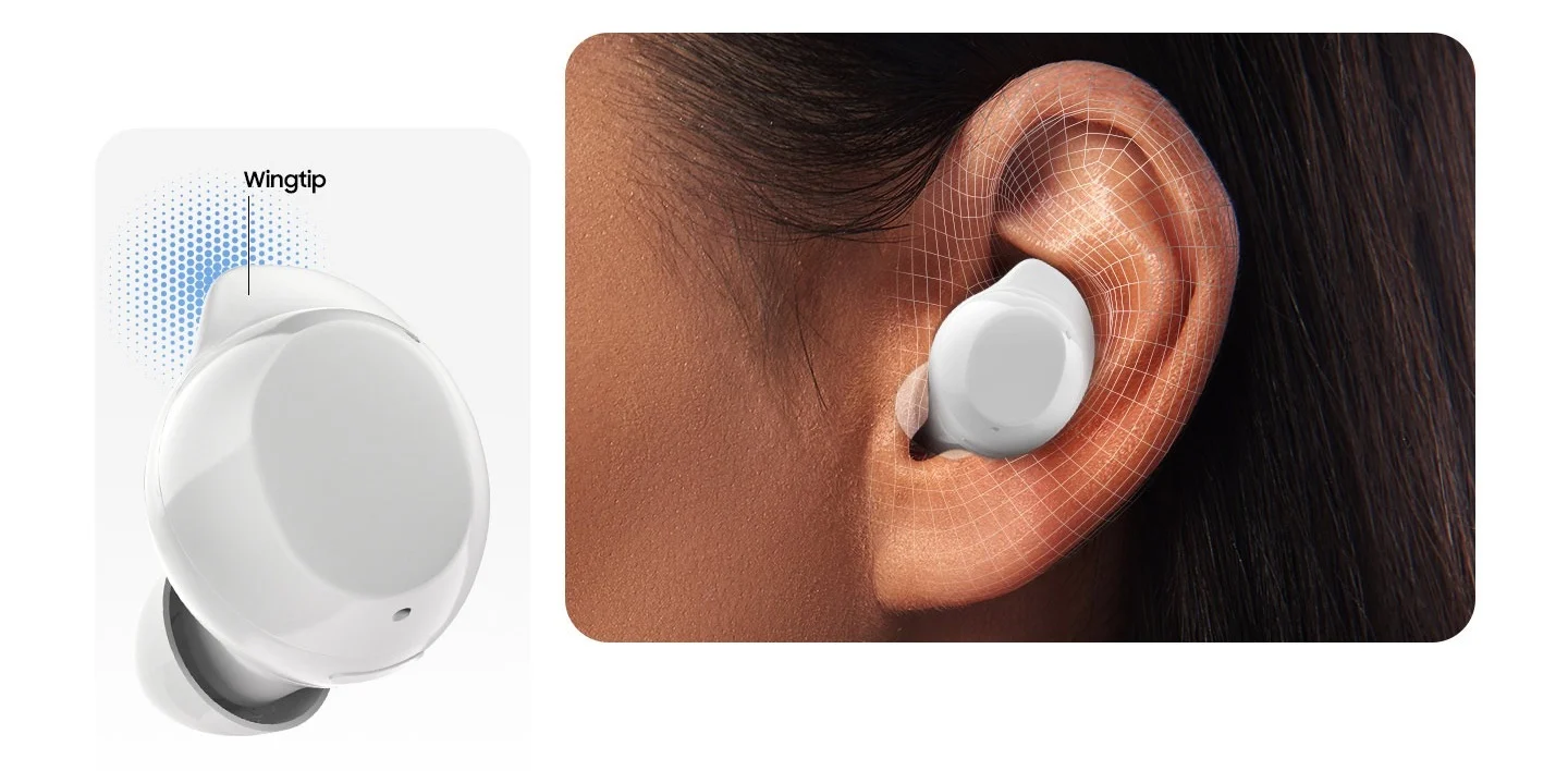 Design Galaxy Buds Core nie jest rewolucyjny i przypomina dobrze znane Buds FE, włącznie z silikonowymi skrzydełkami, które pomagają w stabilnym osadzeniu słuchawek w uchu. Sama konstrukcja sprawia wrażenie dopracowanej, chociaż nie wyróżnia się wizualnie na tle konkurencji. Słuchawki ważą po 5,3 grama, co plasuje je w kategorii lekkich i wygodnych do dłuższego noszenia.
