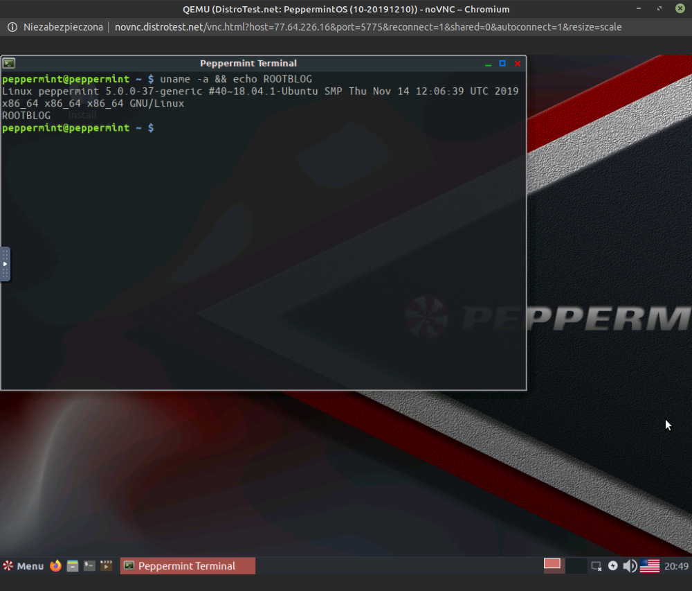 Jak widzicie, distrotest.net to prosty sposób na sprawdzenie wielu różnych dystrybucji Linuxa bez marnowania czasu na pobieranie obrazów ISO i ich wypalania/uruchamiania w wirtualnej maszynie. Daje nam to również dostęp do wielu funkcji systemowych, na przykład Terminala, na urządzeniach mobilnych.