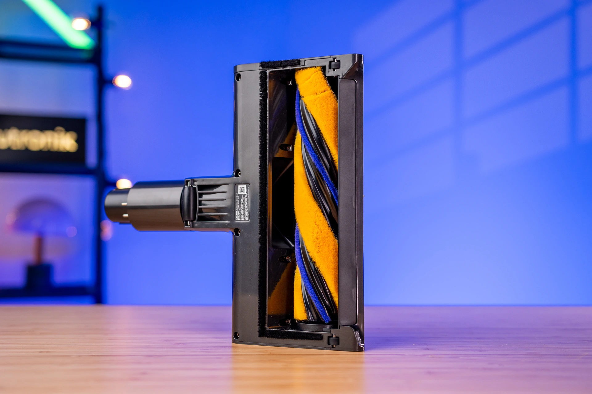 Omni-Brush to najczęściej używana szczotka w zestawie Dreame R20 Ultra AquaCycle™, odpowiedzialna za codzienne odkurzanie zarówno twardych podłóg, jak i dywanów. Jej spiralnie ułożone włosie doskonale wyczesuje kurz z dywanów, a elastyczny wałek pozwala łagodnie sunąć po panelach czy parkiecie bez ryzyka zarysowań.