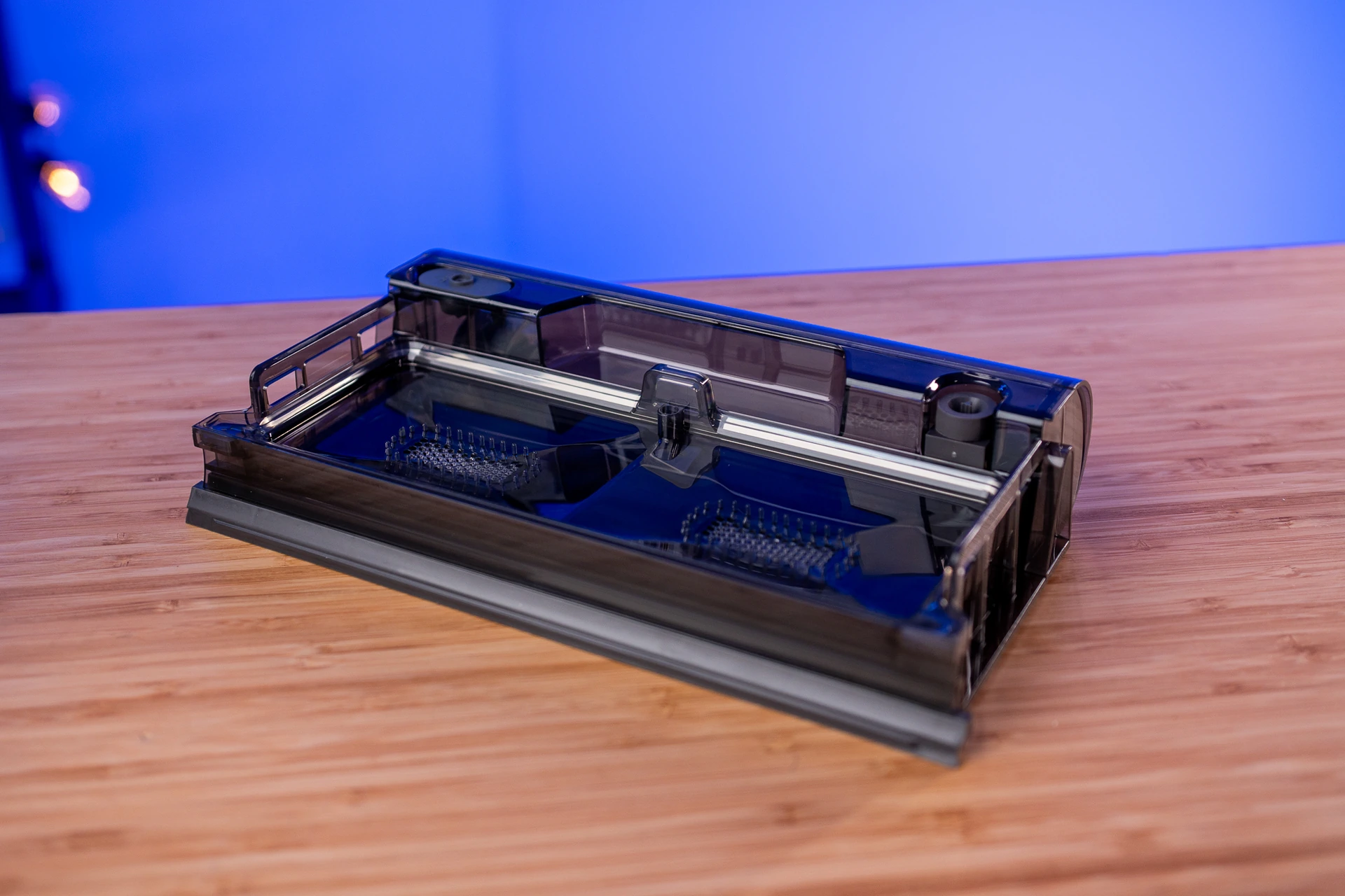 Kluczowa końcówka do mycia podłóg w tym modelu. Głowica mopująca z rotacyjnym, podwójnym mopem szybko usuwa wszelkiego typu zabrudzenia — od plam z napojów po ślady butów. System AquaCycle™ zapewnia stałe nawilżenie materiału mopującego świeżą wodą, oddzielając jednocześnie brudną ciecz do osobnego zbiornika. Efekt to nie tylko czystość, ale i podłoga wolna od smug oraz pozostałości po chemikaliach. Mopowanie staje się proste nawet na dużej powierzchni – mop obraca się płynnie, a przez szeroką powierzchnię roboczą, mopowanie zajmuje nam niewiele czasu.