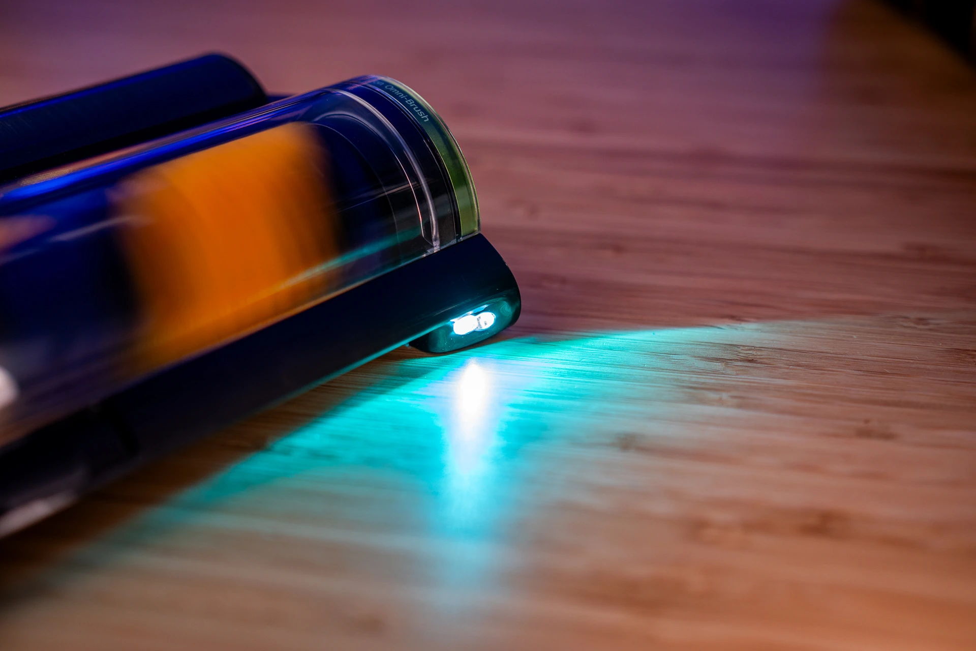 Szczotka wyróżnia się oświetleniem LED, które podkreśla nawet najmniejsze drobinki kurzu i sierści, pozwalając na wyjątkowo dokładne sprzątanie nawet pod łóżkiem czy w ciemnych rogach pokoju. Dzięki nisko profilowej budowie szczotka łatwo wsuwa się pod meble i pozwala wygodnie posprzątać trudno dostępne miejsca.