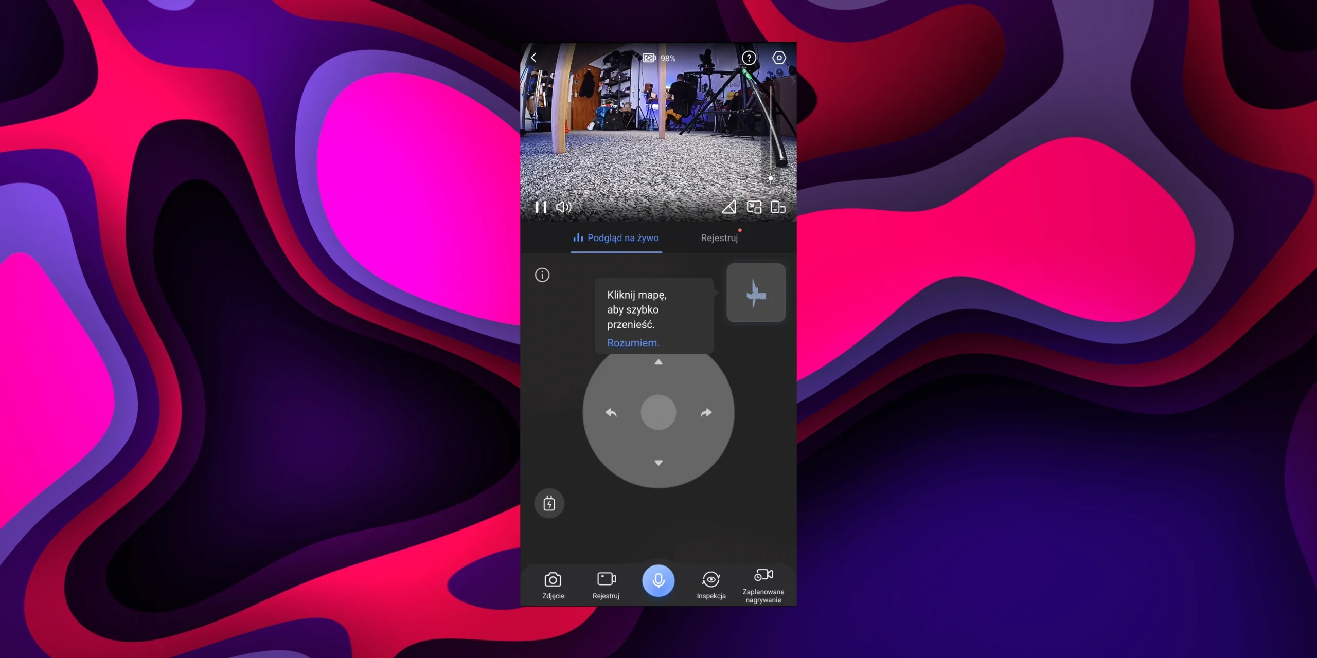 Aplikacja EZVIZ pozwala tworzyć mapy wielopoziomowe, planować harmonogramy czy obserwować dom przez kamerę 1080p z rozpoznawaniem obiektów. Dostępnych jest wiele wersji językowych, w tym polska, którą można zmienić jeśli jakieś tłumaczenia okażą się nieprecyzyjne. Na plus zasługuje integracja z Asystentem Google i Alexą, umożliwiająca sterowanie głosowe.