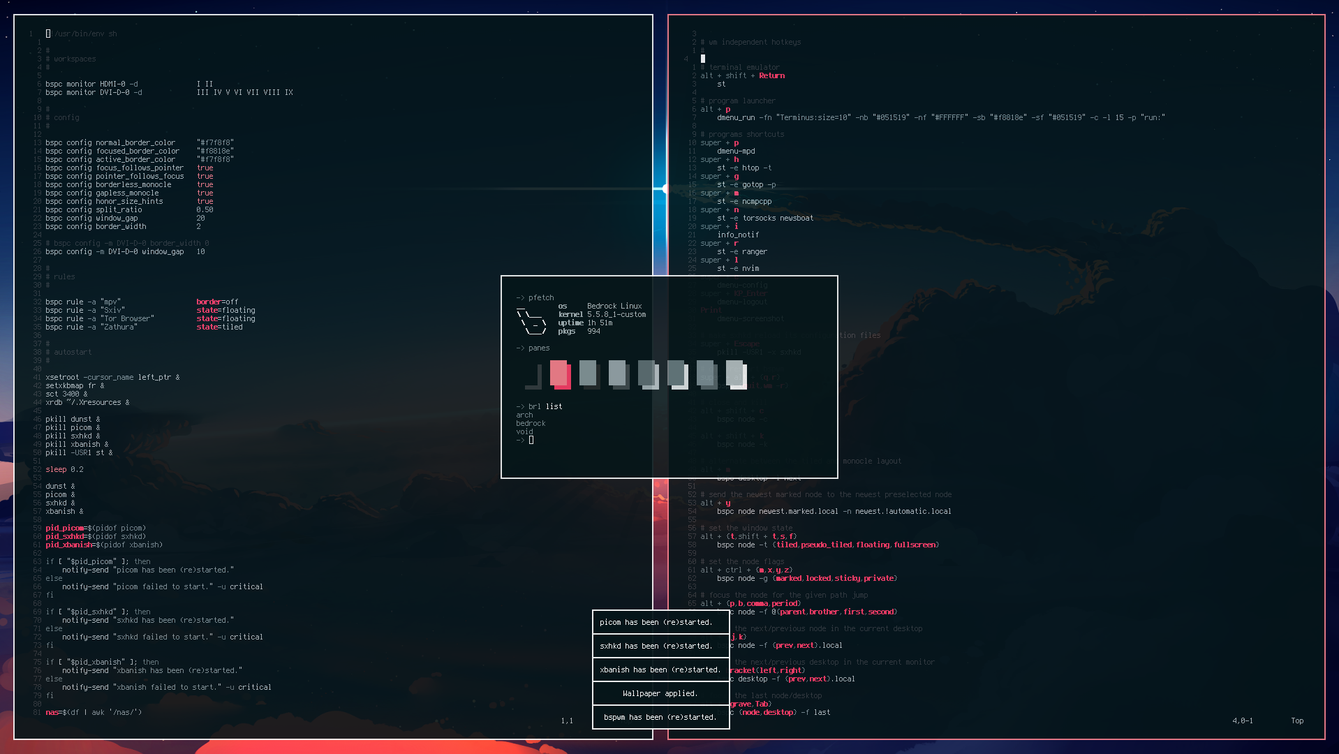 W rzeczywistości są to bardzo lekkie środowiska z menadżerem okien typu tiling. Takie interfejsy znacznie odbiegają od tego co znamy z Windowsa, czy nawet z macOS. Aplikacje układamy w swego rodzaju kafelki – programy są ustawione ściśle obok siebie i wypełniają niemalże cały ekran. Jeśli dobrze skonfigurujemy to środowisko, to otrzymujemy niezwykle szybkie, ładne i minimalistyczne distro.