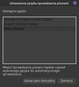 Po tej czynności powinniśmy mieć interfejs w WPS po polsku, jednak nie będziemy mieli sprawdzania polskiej pisowni. Dlatego też pobieramy >to archiwum<. Tworzymy nowy katalog o nazwie pl_PL i wklejamy do niego zawartość przed chwilą pobranego archiwum. Następnie wracamy do menedżera plików (jeśli go wyłączyłeś to powtórz komende sudo nemo), odnajdź utworzony przed chwilą katalog pl_PL i skopiuj go do /opt/kingsoft/wps-office/office6/dicts/spellcheck. Po tym kroku możesz wyłączyć menedżer plików.
