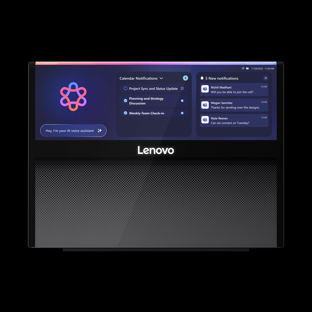 Równolegle Lenovo pokazało urządzenia, które już w 2026 roku pojawią się w sklepach. Yoga AIO i Aura Edition to komputer all-in-one z dużym ekranem OLED 4K o wysokim odświeżaniu, który został zaprojektowany z myślą o twórcach i osobach pracujących z multimediami. Zintegrowane, adaptacyjne podświetlenie reaguje na treści wyświetlane na ekranie, ale może też pełnić funkcję subtelnego systemu powiadomień, co wpisuje się w trend „ambient computing”.