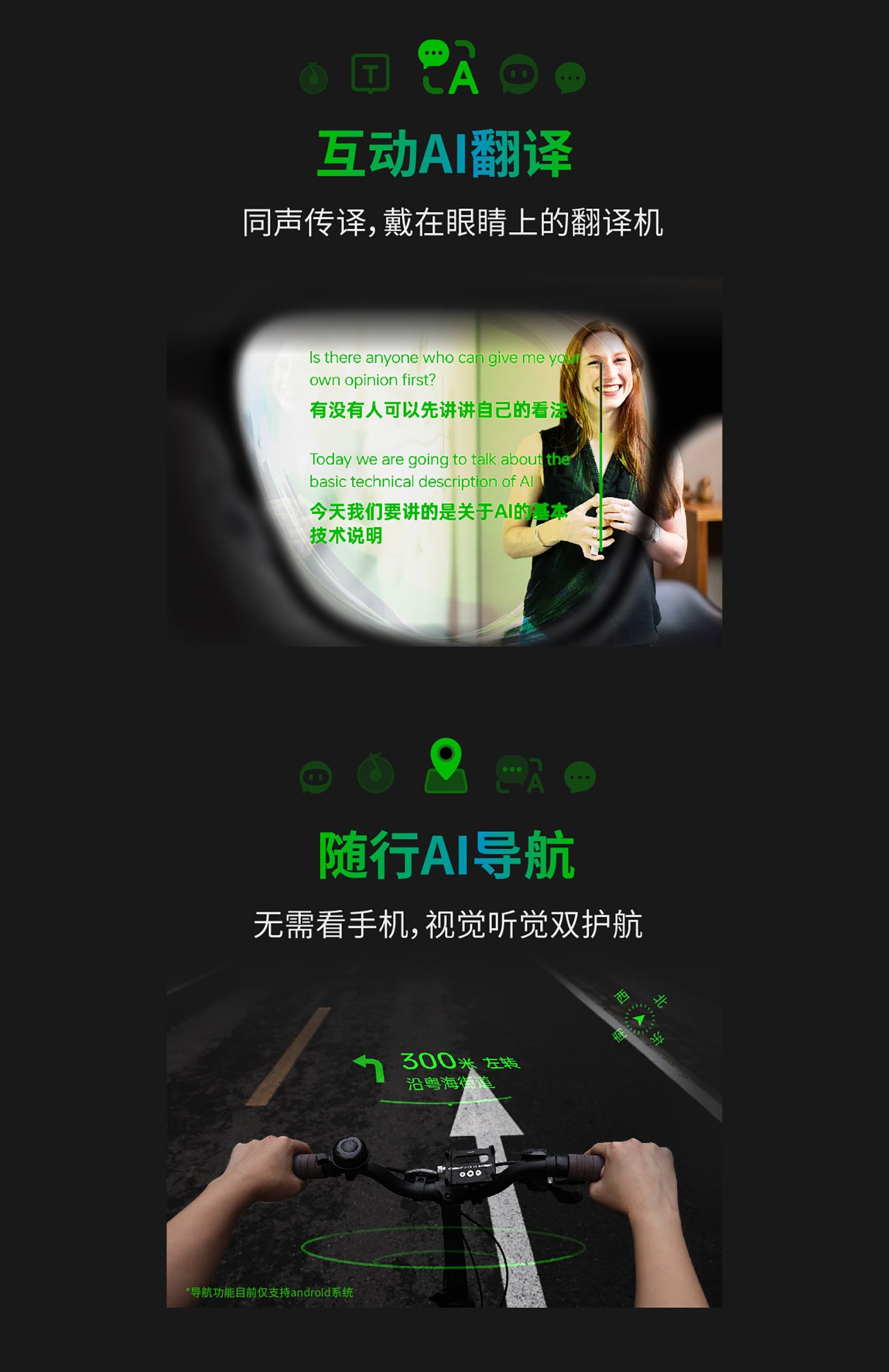 Tłumacz AI wykorzystuje dwukierunkowy mikrofon i wbudowany system dźwięku przestrzennego, dzięki czemu rozmowy w dwóch językach odbywają się naturalnie, a napisy tłumaczenia pojawiają się bezpośrednio na soczewce. Z kolei teleprompter AI automatycznie dostosowuje tempo wyświetlanego tekstu do mowy użytkownika, co sprawia, że okulary mogą być idealnym narzędziem dla prezenterów, nauczycieli czy streamerów.