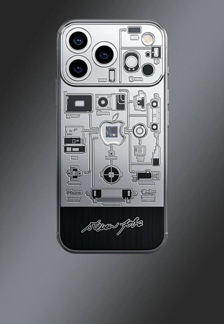 Najbardziej wyjątkowym elementem jest jednak przezroczyste logo Apple umieszczone z tyłu obudowy. W jego wnętrzu znalazł się autentyczny fragment płyty głównej pochodzący z pierwszego iPhone’a z 2007 roku. Dodatkowo na czarnym pasku producent umieścił wygrawerowany podpis Steve Jobs, a tytanowa ramka zawiera indywidualny numer seryjny konkretnego egzemplarza. Tył urządzenia ozdobiono także subtelnym grawerem przedstawiającym elementy konstrukcyjne historycznego modelu, co podkreśla kolekcjonerski charakter tej edycji.