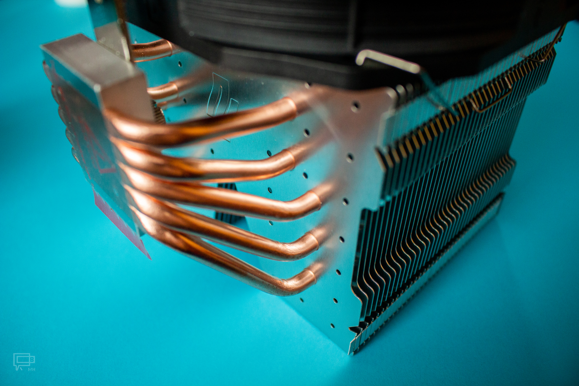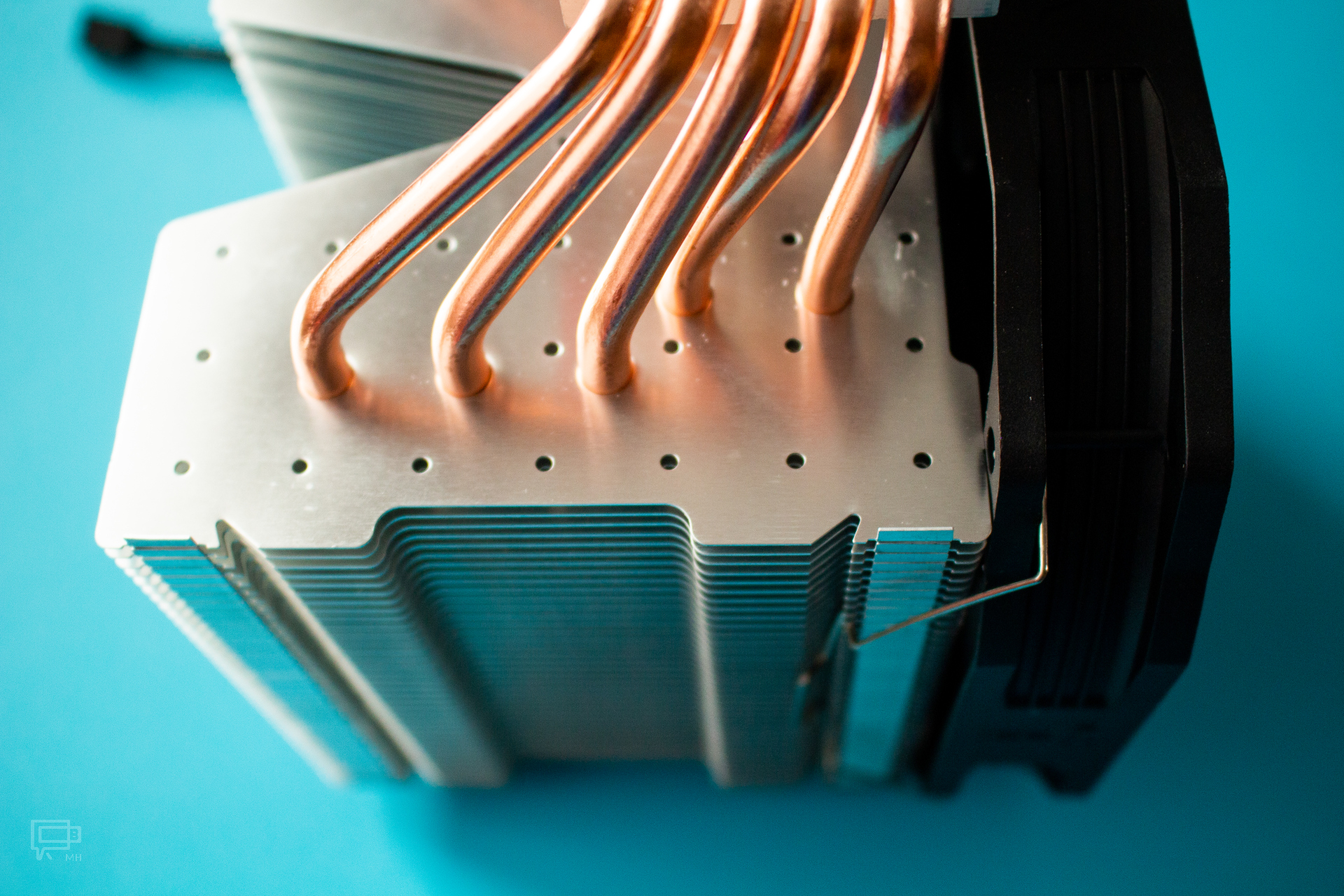 Wykorzystuje on pięć 6mm heatpipe’ów oraz duży, aluminiowy radiator składający się z 38 finów. Na standardowym wyposażeniu chłodzenia znajduje się wentylator SilentiumPC Sigma PRO 140mm PWM. Oferuje on pracę w zakresie 500-1400 obrotów na minutę.