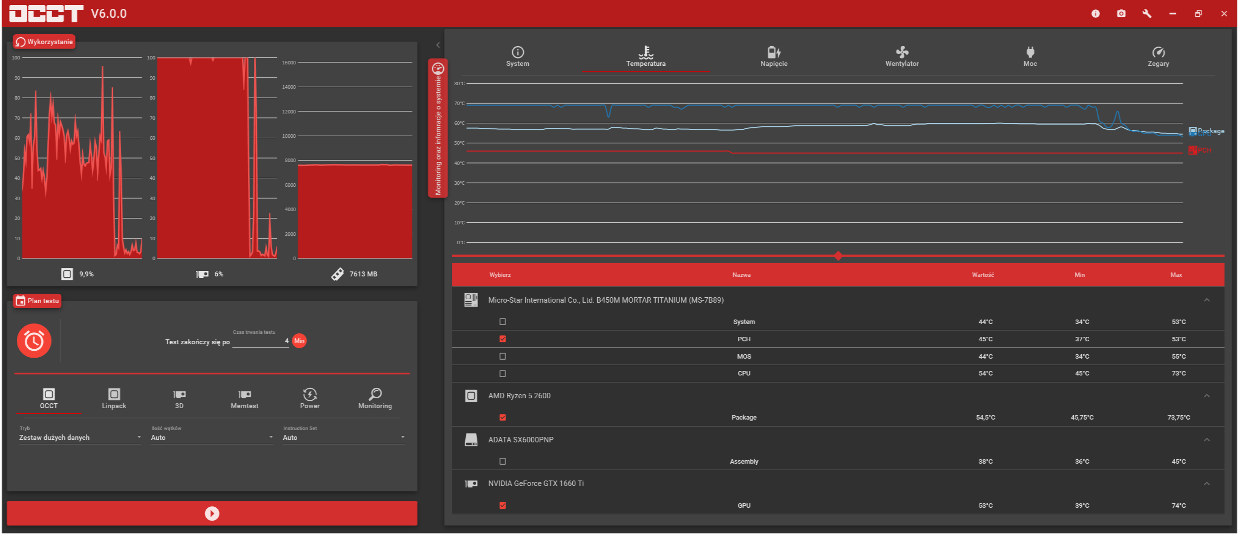 Kilkuminutowy test w OCCT pokazał natomiast, że procesor z boksowym chłodzeniem łatwo jest doprowadzić do temperatury około 80 stopni Celsjusza.