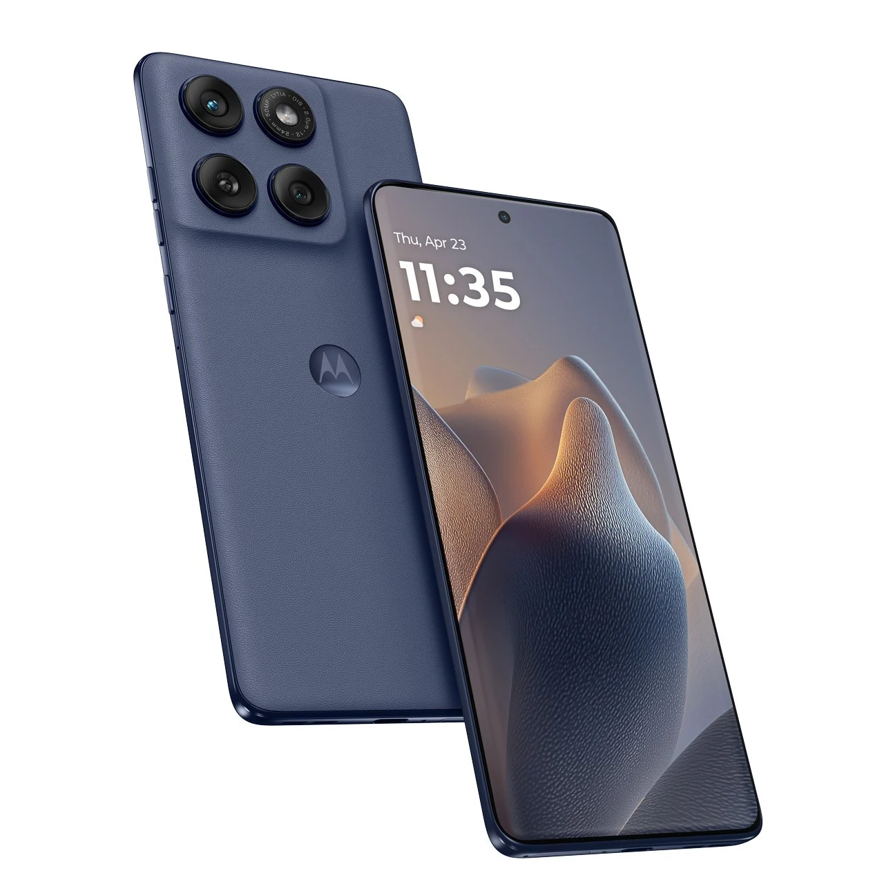 Z przodu znajdziemy ekran pOLED o przekątnej 6,67 cala, charakteryzujący się wysoką rozdzielczością 1220p oraz częstotliwością odświeżania 120 Hz. Motorola zadbała również o jasność na poziomie 4500 nitów, dzięki treści będą dobrze widoczne nawet w pełnym słońcu. Na ochronę wyświetlacza zastosowano szkło Corning Gorilla Glass 7i, a dodatkowym atutem jest technologia Water Touch, pozwalająca na wygodną obsługę nawet przy mokrym ekranie.