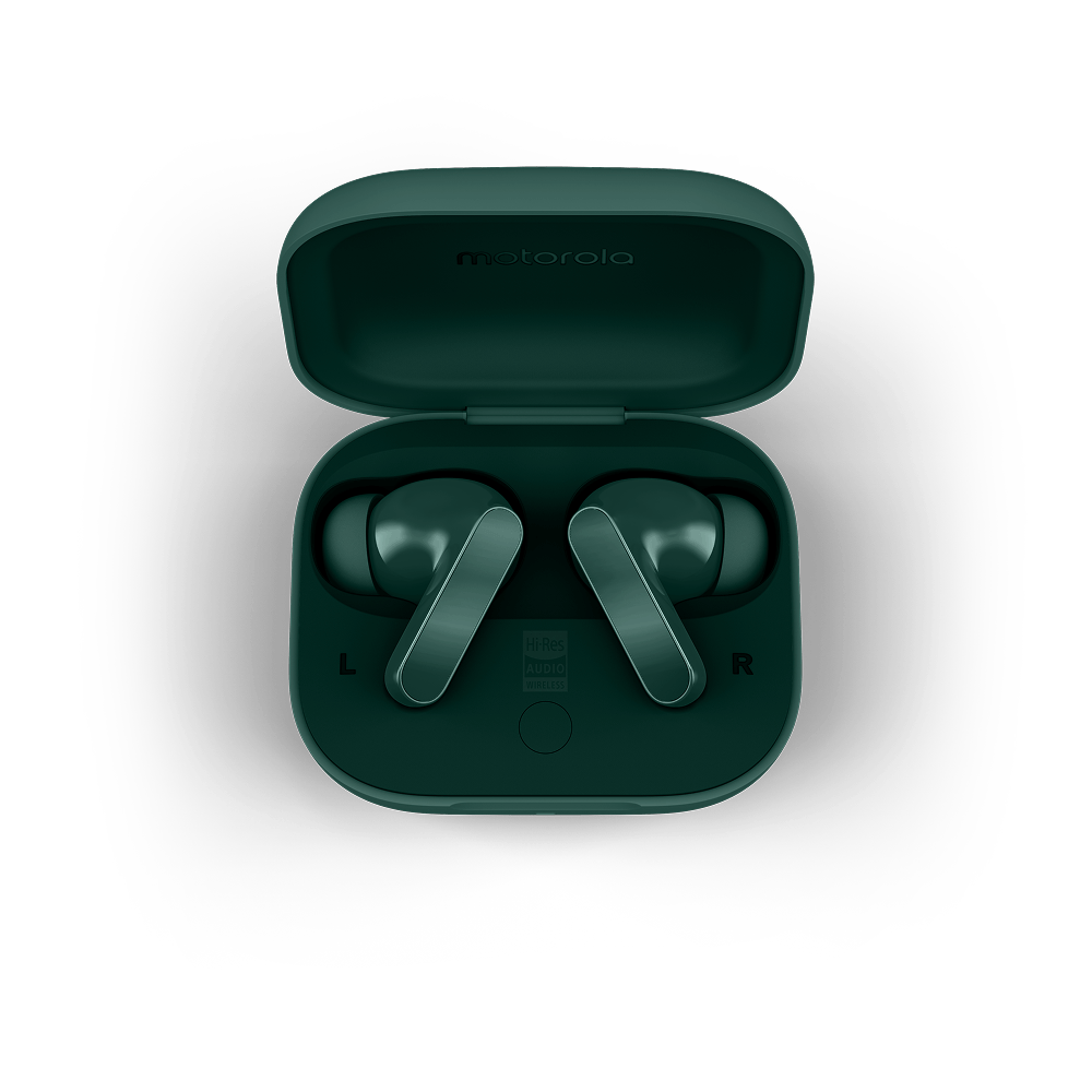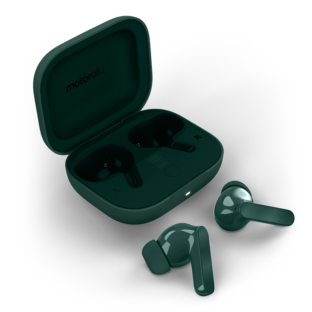 Motorola przyzwyczaiła już użytkowników do ciekawych wariantów kolorystycznych i nie inaczej jest tym razem. Moto Buds Bass będą dostępne w trzech odcieniach stworzonych we współpracy z Pantone: Blue Jewel, Posy Green oraz Dark Shadow. To wyróżnik, który może przyciągnąć osoby szukające bardziej charakterystycznych akcesoriów.