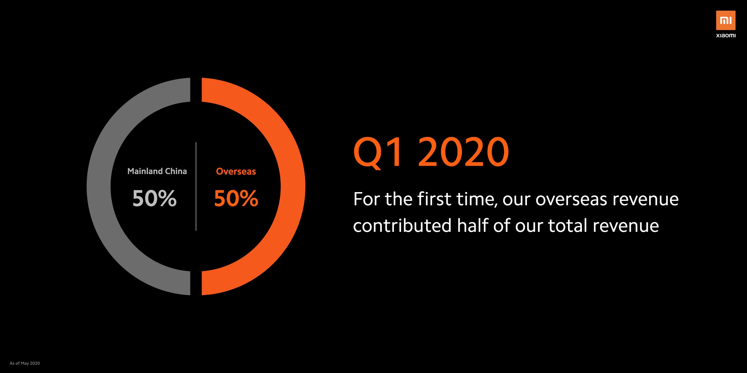 Prezentacja rozpoczęła się wspomnieniem działań firmy podczas pandemii koronawirusa. Prowadzący podzielił się kilkoma liczbami związanymi z tym tematem, później przyszła kolej na delikatne przechwalanie się statystykami sprzedaży. Moim zdaniem najlepszą ciekawostką było to, że dochód Xiaomi w pierwszym kwartale tego roku podzielił się po równo między Chiny, a resztę świata, co jest pierwszym tak wyrównanym wynikiem w dziesięcioletniej historii firmy.