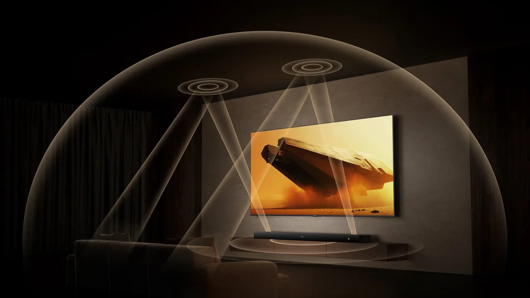 Pod względem łączności użytkownicy mają sporo opcji. Na pokładzie znajdziemy Bluetooth 5.4 oraz zestaw złączy przewodowych: HDMI i HDMI eARC, USB, SPDIF oraz wejście optyczne. Szczególnie istotne dla graczy będzie wsparcie transmisji 4K z VRR do 120 Hz i ALLM, co pozwala na minimalizowanie opóźnień i poprawia płynność rozgrywki na konsolach nowej generacji.