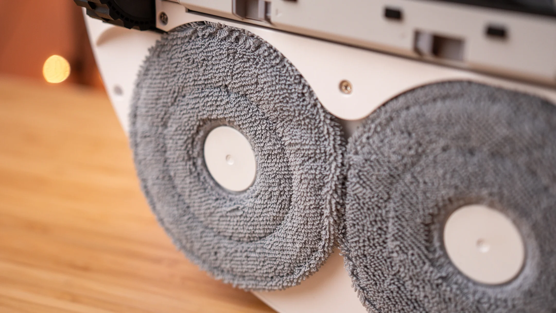 Robot wyposażono w dwa pady mopujące oraz wysuwaną, dwuramienną szczotkę boczną, która doskonale radzi sobie z dokładnym czyszczeniem nawet w ciasnych narożnikach i wzdłuż krawędzi mebli. Dzięki temu sprzątanie jest jeszcze bardziej kompleksowe i skuteczne.