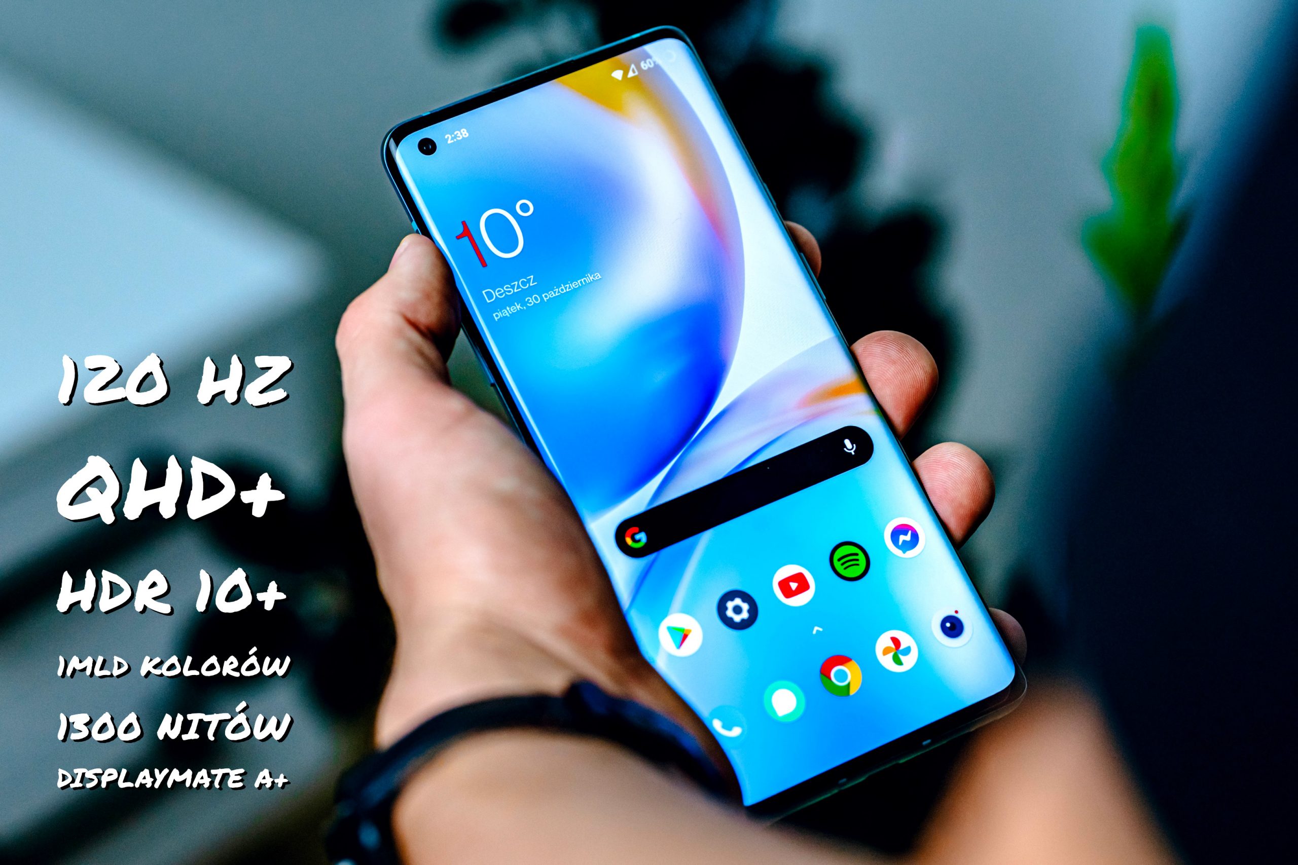 Od serii siódmej swoich smartfonów, OnePlus dążył do tworzenia jednych z najlepszych, a nawet najlepszych ekranów w telefonach komórkowych i … udaje się im to wyjątkowo dobrze. W tym przypadku nie jest inaczej. Zaimplementowany został tutaj 6.78 calowy, 120Hz-owy AMOLED o rozdzielczości FullHD+, w formacie 20:9. Głównymi zaletami tego panelu jest absolutna płynność, oraz idealne detale – wszelkie treści pochłaniane na tym urządzeniu wydają się być idealne pod kątem kolorów jak i jakości. Nic dziwnego, że smartfon otrzymał ocenę A+ od DisplayMate, oraz możliwość obsługi HDR10+. Oprócz tego, maksymalna jasność to aż 1300 nitów, co z pewnością pozwoli na dużą widoczność w sporym naświetleniu.