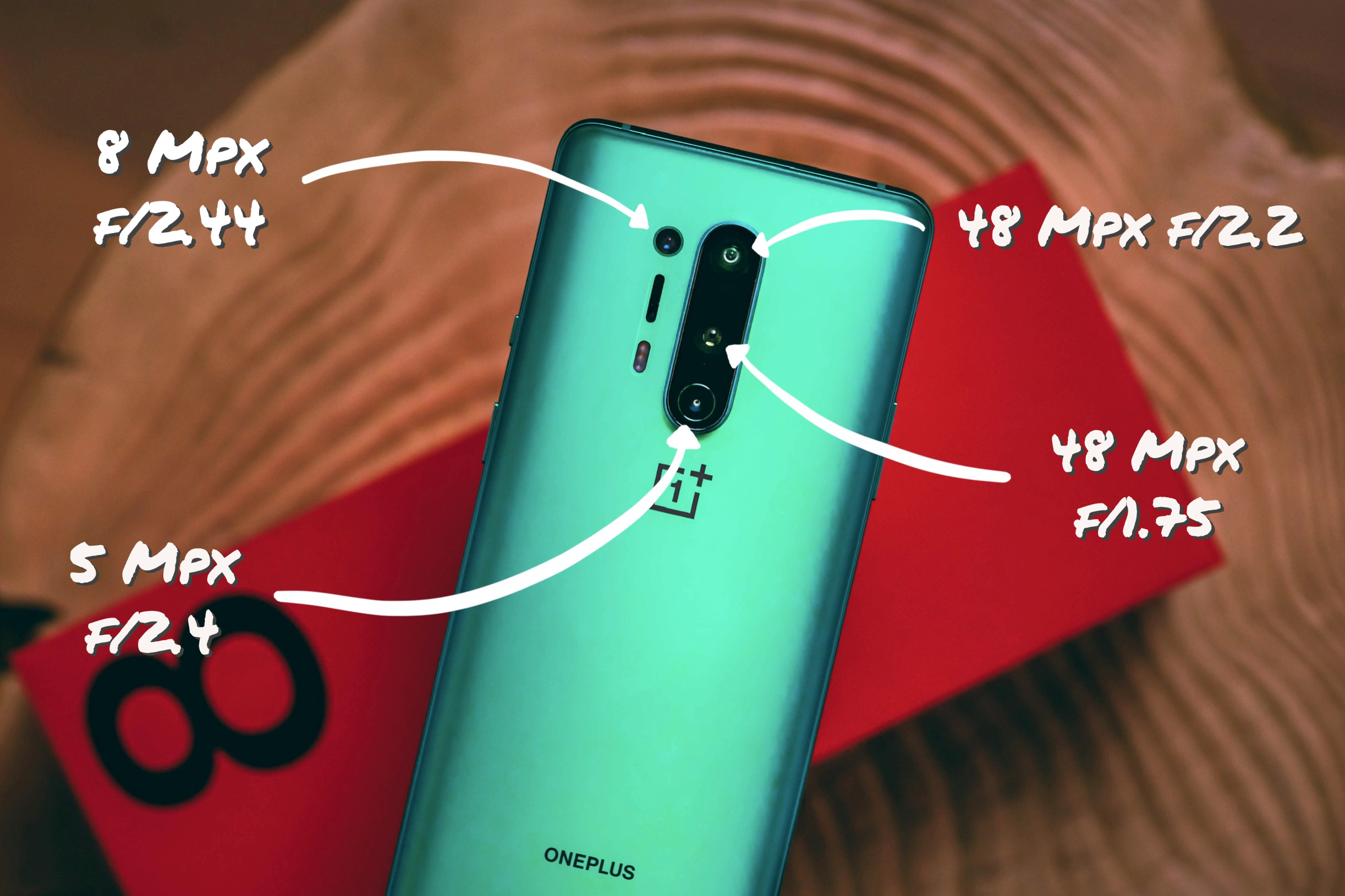 W skład zestawu aparatów OnePlus 8 Pro wchodzi nam obiektyw ultraszerokokątny o rozdzielczości 48 Mpx i przesłonie f/2.2, główny 48 Mpx f/1.75, teleobiektyw 8 Mpx f/2.44, oraz obiektyw fotochromatyczny 5 Mpx f/2.4. Spośród tych 4, zaimplementowanych matryc, jedna wydaje się być dodana trochę na wyrost – ostatni z wymienionych filtr barw. Niemniej jednak. pomoże on nam wykonywać lepsze portrety czarno białe, czy szukać lepszego odwzorowania kolorów, którymi w większości innych urządzeń zajmuje się sztuczna inteligencja, oraz różne algorytmy.