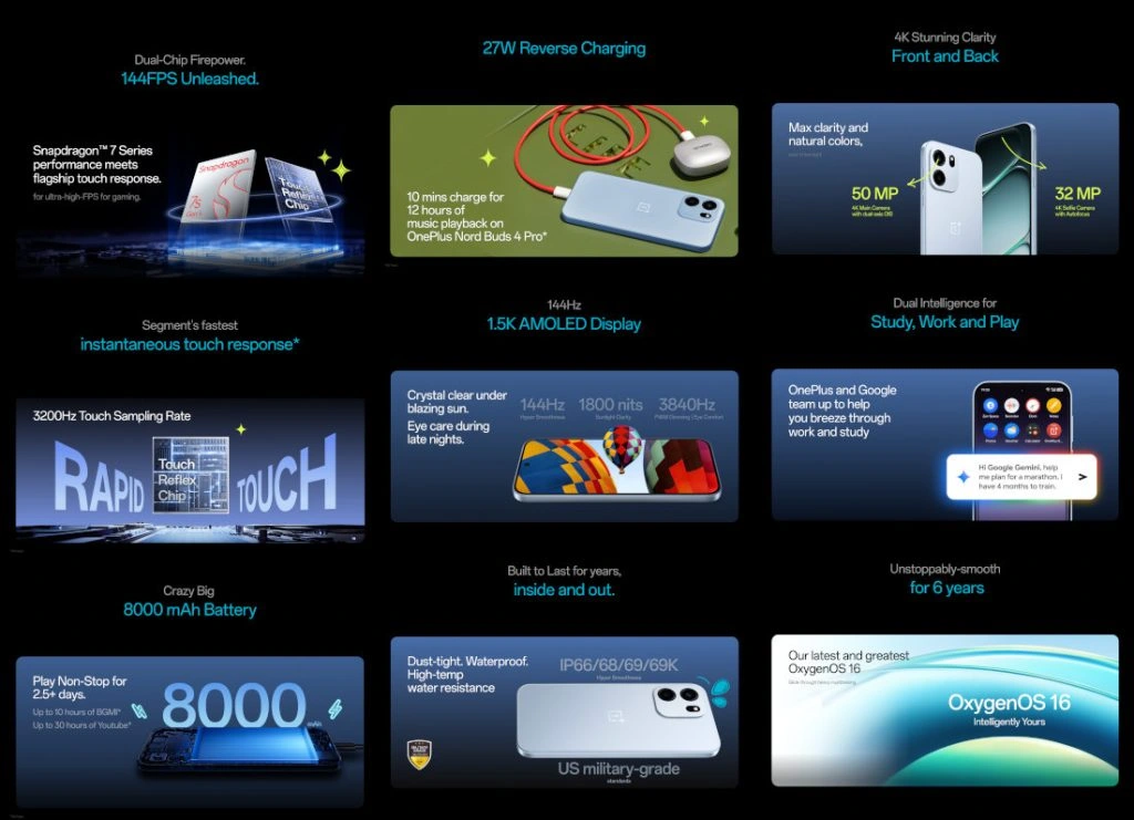 Z tyłu znajdzie się główny aparat 50 Mpx z optyczną stabilizacją obrazu, która powinna poprawić jakość zdjęć po zmroku i zwiększyć stabilność nagrań. Przedni aparat otrzyma matrycę 32 Mpx z autofokusem. Co istotne, zarówno aparat główny, jak i przedni mają obsługiwać nagrywanie w 4K. Producent dorzuci również zestaw funkcji AI do edycji zdjęć, takich jak usuwanie odbić, poprawa ostrości czy automatyczne kadrowanie, które zostaną zintegrowane z OxygenOS 16 opartym na Androidzie 16.