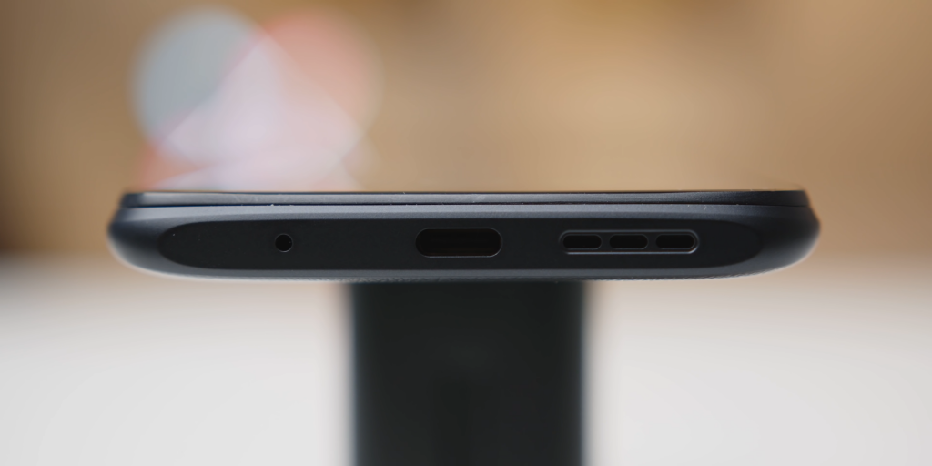 W dodatku tył POCO M3 został pokryty tworzywem o nietypowej fakturze, które ma przypominać skórę. Albo uznacie to za kicz, albo uznacie, że jest to całkiem dobre rozwiązanie. Zdecydowanie jest to odejście od przewijającego się wszędzie szkła i plastiku. POCO M3 dzięki takiemu zabiegowi nie ślizga się w rękach ani nie zmienia szybko swojego wyglądu w jeden wielki odcisk palca. Na prawej krawędzi znalazły się przyciski głośności oraz klawisz ze zintegrowanym czytnikiem linii papilarnych. U góry mamy za to złącze słuchawkowe jack 3,5 mm, a u dołu port USB typu C, obie te krawędzie są ścięte. Konstrukcja wydaje się być solidna i nie złapała żadnych widocznych uszkodzeń w czasie testów.