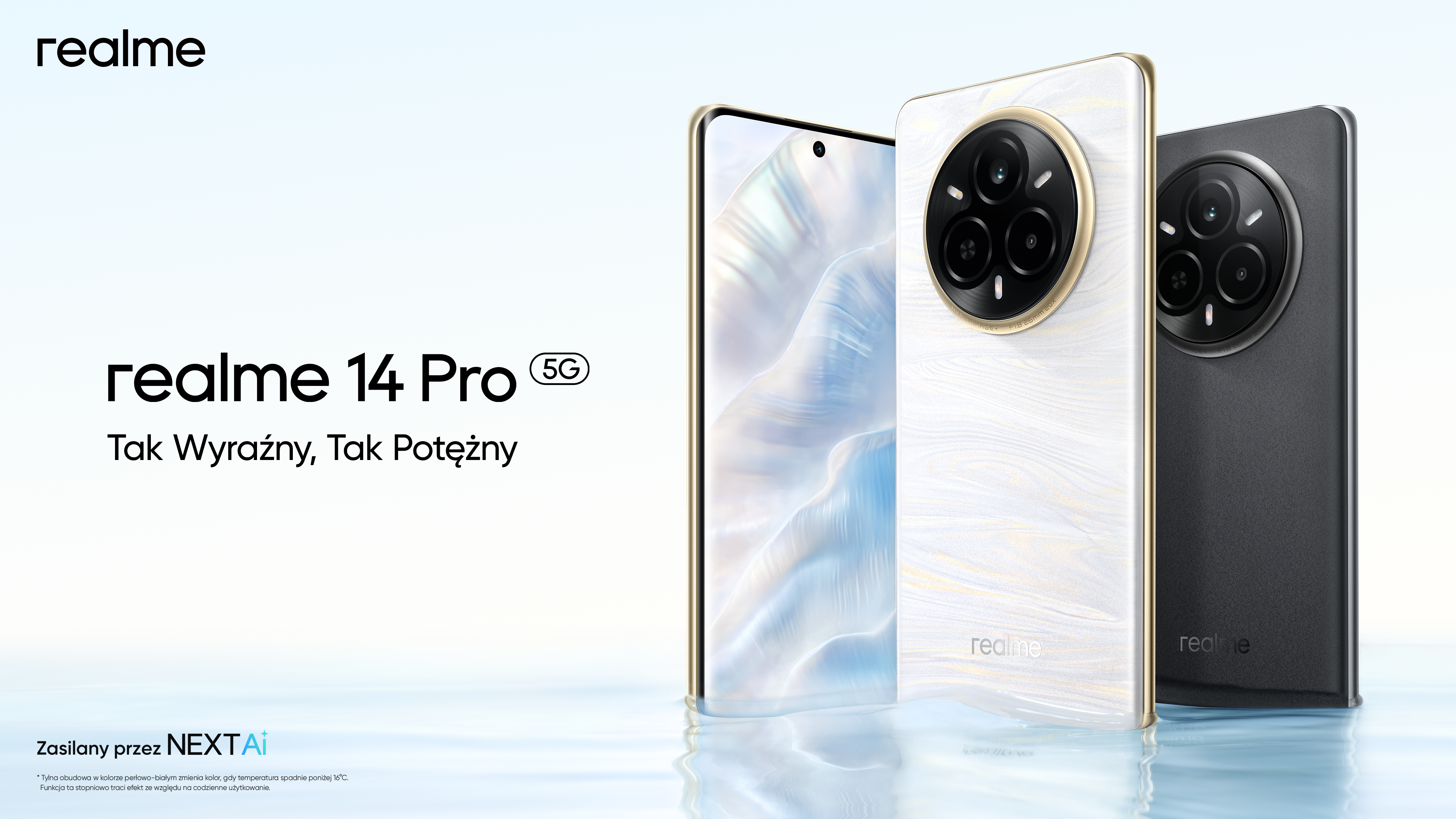 Podczas MWC 2025 realme zaprezentowało najnowszą serię realme 14 Pro, wprowadzającą innowacyjne technologie do segmentu średniej klasy. Wersja 14 Pro+ to flagowy smartfon średniej klasy, który redefiniuje mobilną fotografię. Wyposażony w aparat główny Sony IMX896 OIS 50 MP oraz teleobiektyw peryskopowy Sony IMX882, pozwala na 120-krotny SuperZoom. Dzięki procesorowi Qualcomm Snapdragon 7s Gen 3 5G i technologii NEXT AI oferuje zaawansowane funkcje, takie jak Ultrawyrazistość AI 2.0. Ponadto jego bateria o pojemności 6000 mAh obsługuje szybkie ładowanie 80 W. Urządzenie łączy smukłą konstrukcję (7,55 mm) z wydajnym chipsetem MediaTek Dimensity 7300 Energy 5G i aparatem Sony IMX882 50 MP. Mimo braku teleobiektywu peryskopowego, urządzenie zachowuje potrójną lampę błyskową MagicGlow i technologię AI Ultra Clarity 2.0.