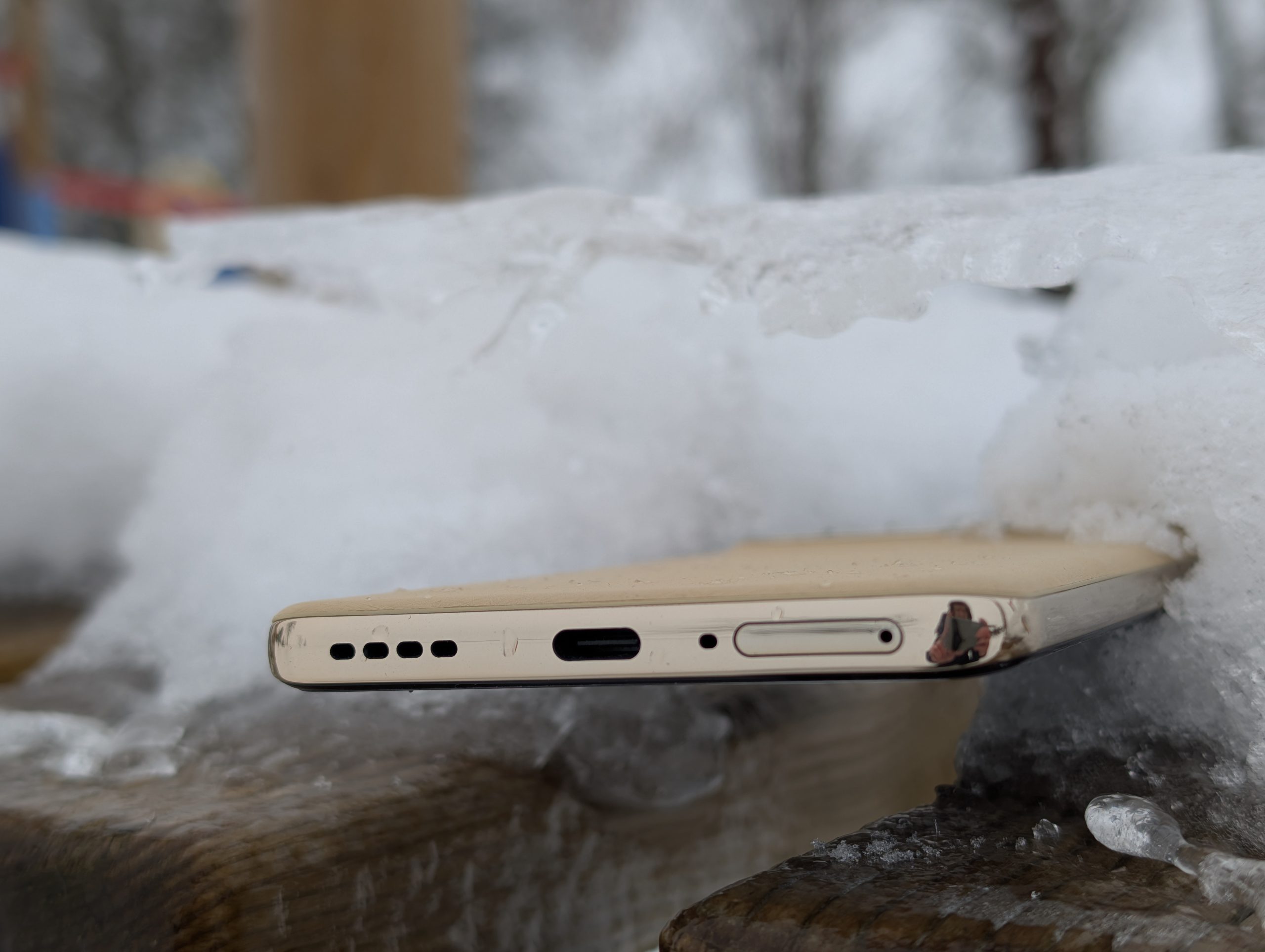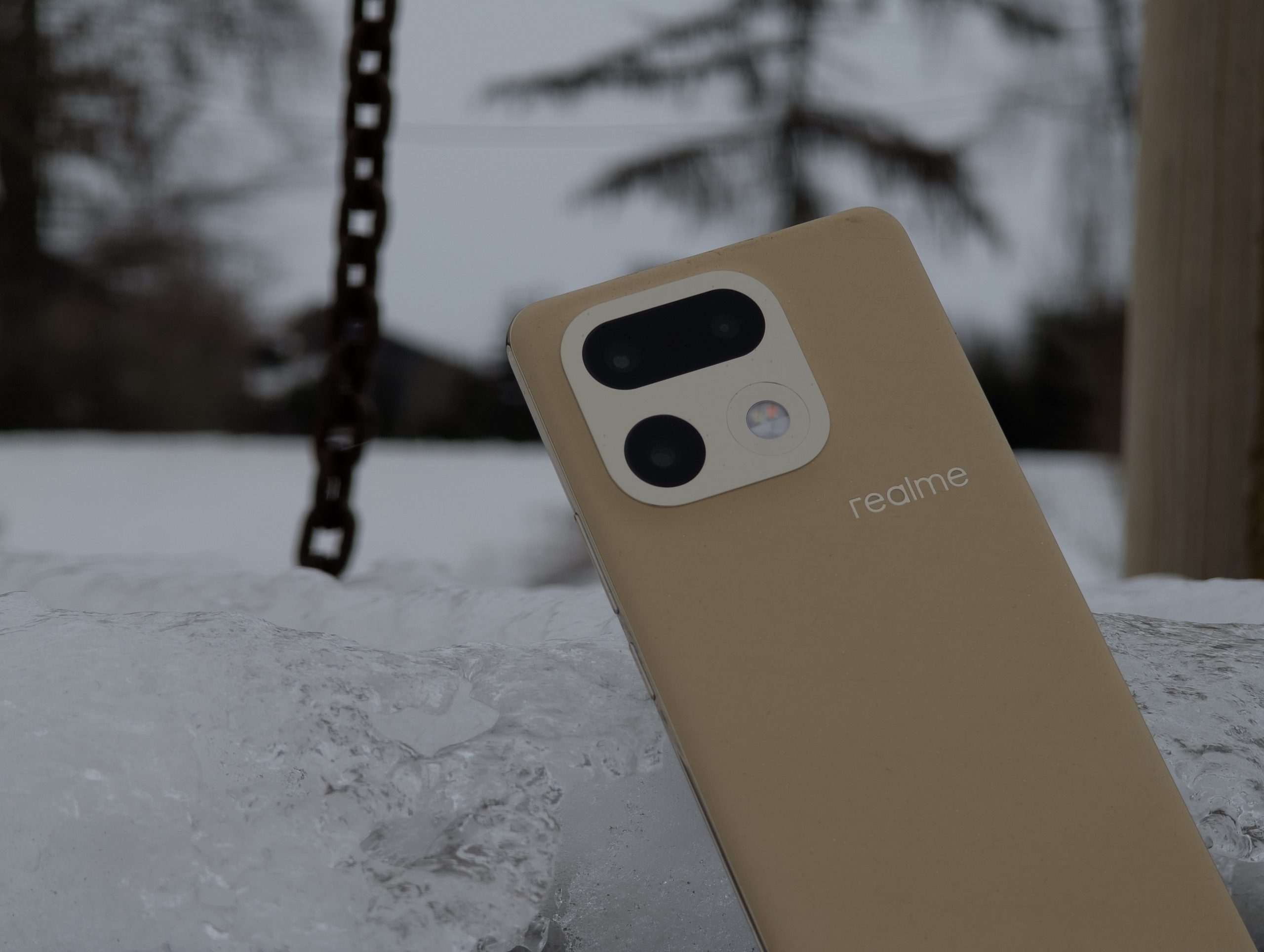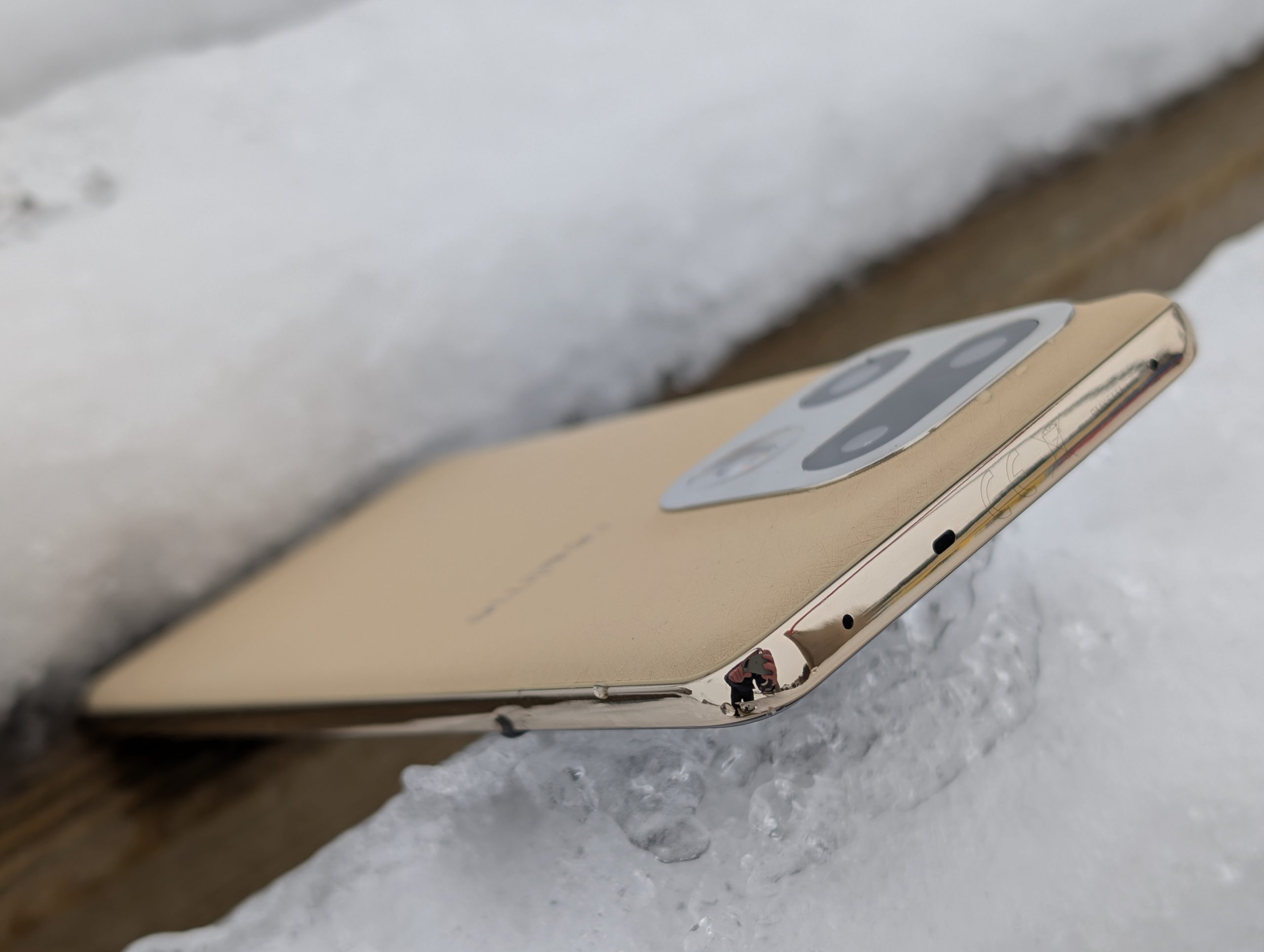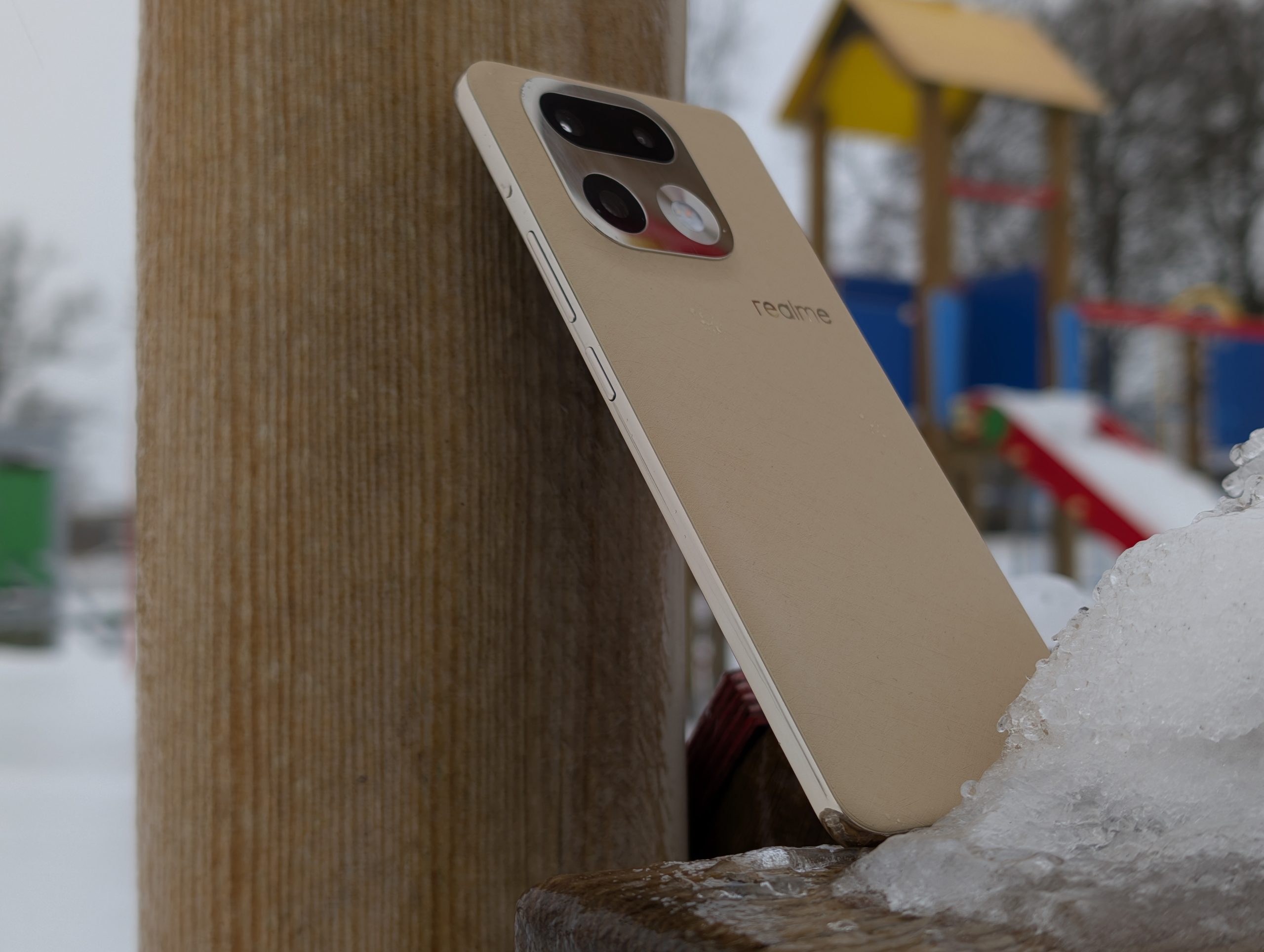 A skoro o wygodzie mowa, to muszę wyrazić zadowolenie z innego powodu. Wygląda na to, że wracamy do zaokrąglonych boków urządzenia, bez ostrych, kanciatych krawędzi. Dzięki temu urządzenia nawet z wielkim ekranem mieszczą się w dłoni wygodnie i sprawiają wrażenie mniejszych. Trend zapoczatkowany przez Apple i linię iPhone 12 w 2020 roku, który z czasem zaczęli zgapiać inni producenci może nareszcie zacząć zanikać. Może to moje osoboste zdanie, ale na prawdę jestem w stanie poświęcić trochę pojemności baterii, aby urządzenie nie miało bryły cegły. realme 16 Pro+ bardzo wygodnie i przyjemnie trzyma się w dłoni. Do złotego koloru plecków dopasowano kolor aluminiowej ramki wokół urządzenia oraz wyspy aparatów.