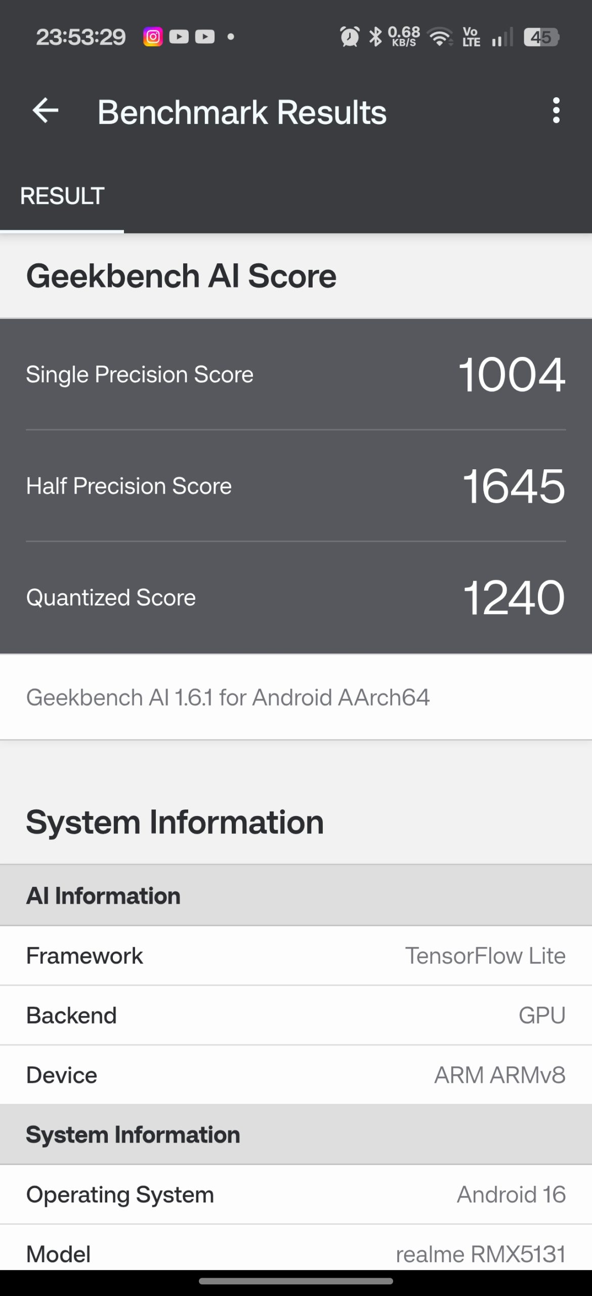 Przez mój krótki okres testów działałem na wersji oprogramowania RMX5131_16.0.2.404, aktualizacja do tej wersji była już dostępna kiedy otrzymałem urządzenie. Zainstalowany jest tu uczywiście najnowszy Android 16 wraz z nakładką realme UI 7. Producent zapewnia 5 lat wsparcia systemu do nowszych wersji systemu i nakładki graficznej realme UI, a oprócz tego 6 lat poprawek bezpieczeństwa. Cieszę się, że długie wsparcie aktualizacjami w smartfonach stało się normą i nie musimy bujać się z przestarzałym systemem po roku czy dwóch.