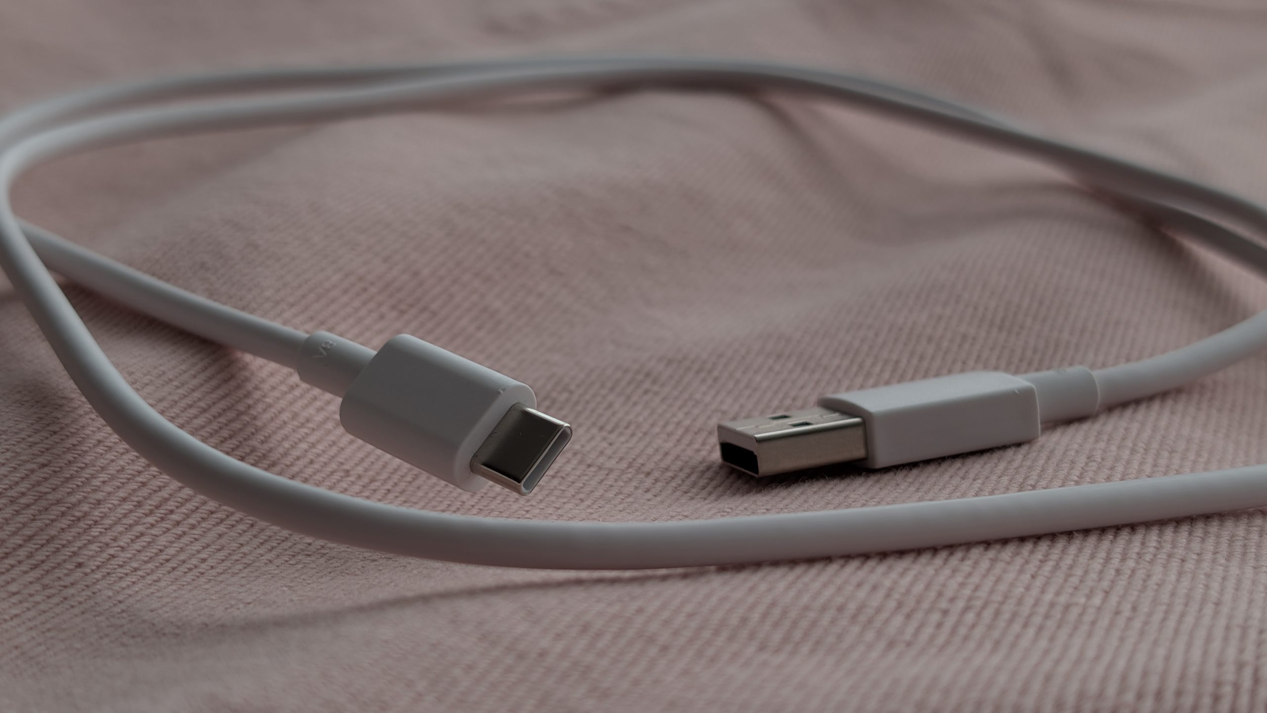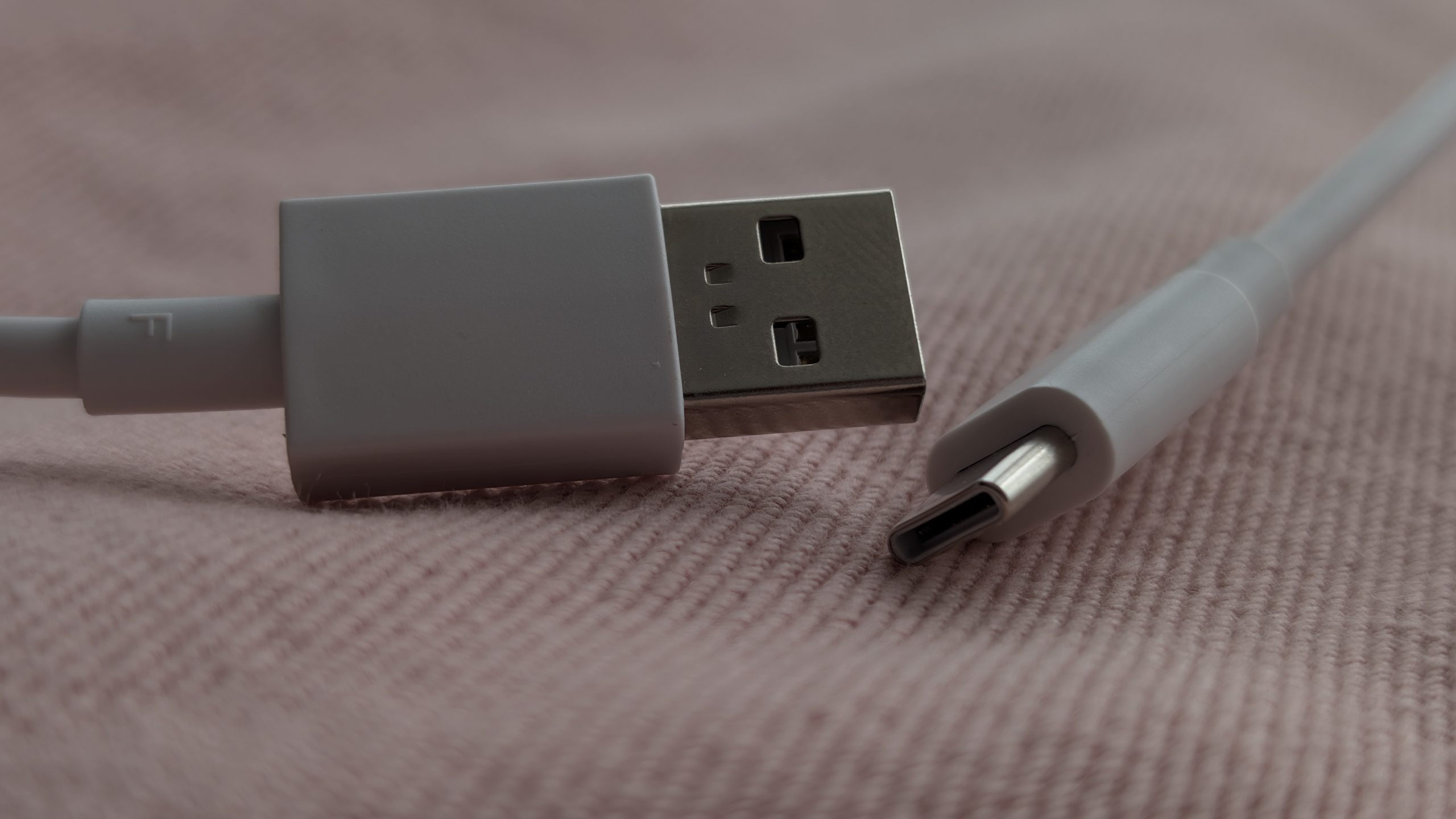 - Biały kabel USB A 2.0 – USB C 2.0