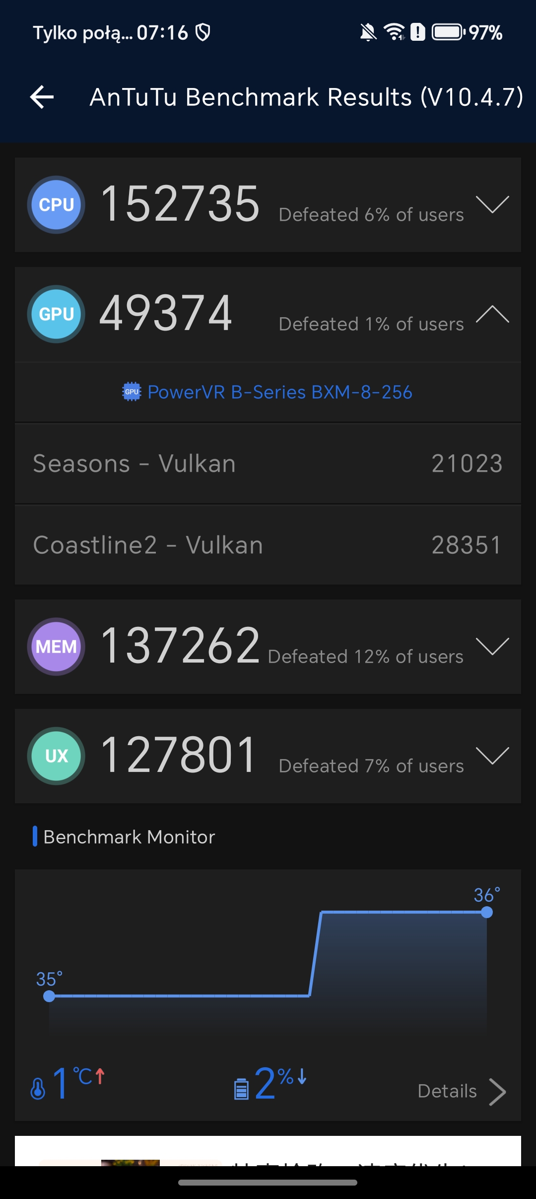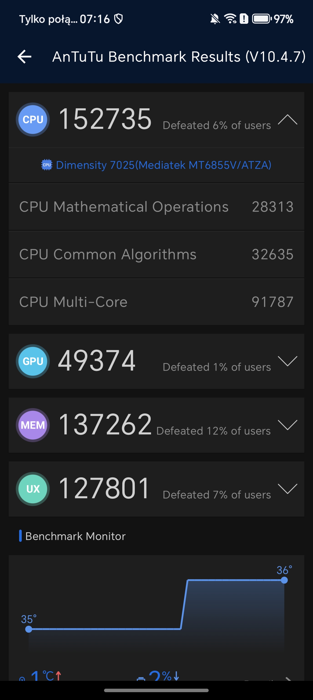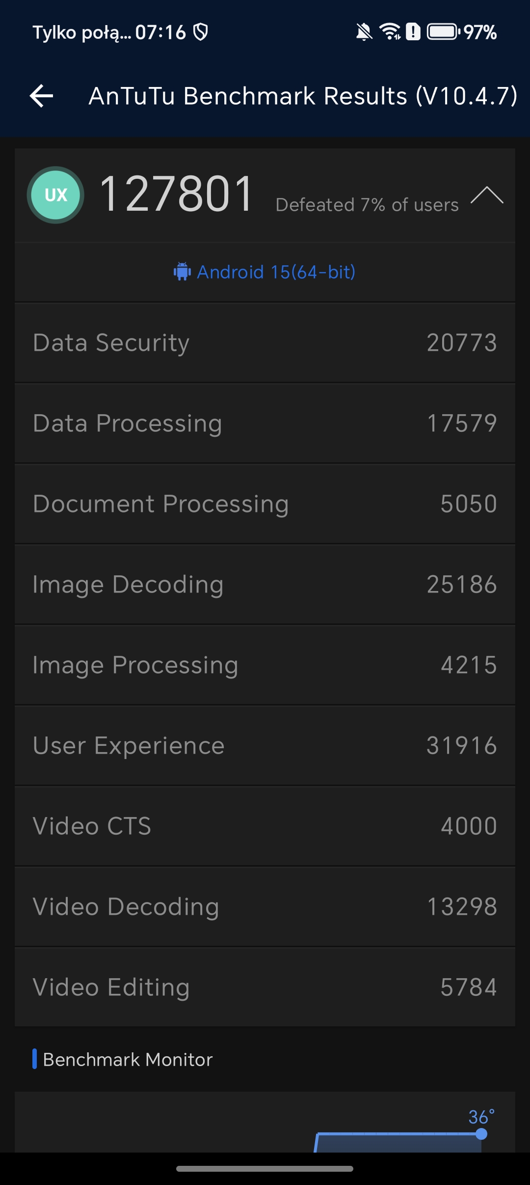 Jednak trzeba mieć na uwadze, że MediaTek Dimensity 7025 Ultra nie należy do najnowszych układów, a w kontekście intensywnego używania telefonu przez kilka godzin z rzędu (np. podczas grania czy edytowania dużych plików wideo), może się pojawić nieco wyższa temperatura urządzenia. Mimo tego, telefon nadal sprawdza się dobrze w codziennym użytkowaniu i oferuje solidną wydajność jak na swoją cenę.