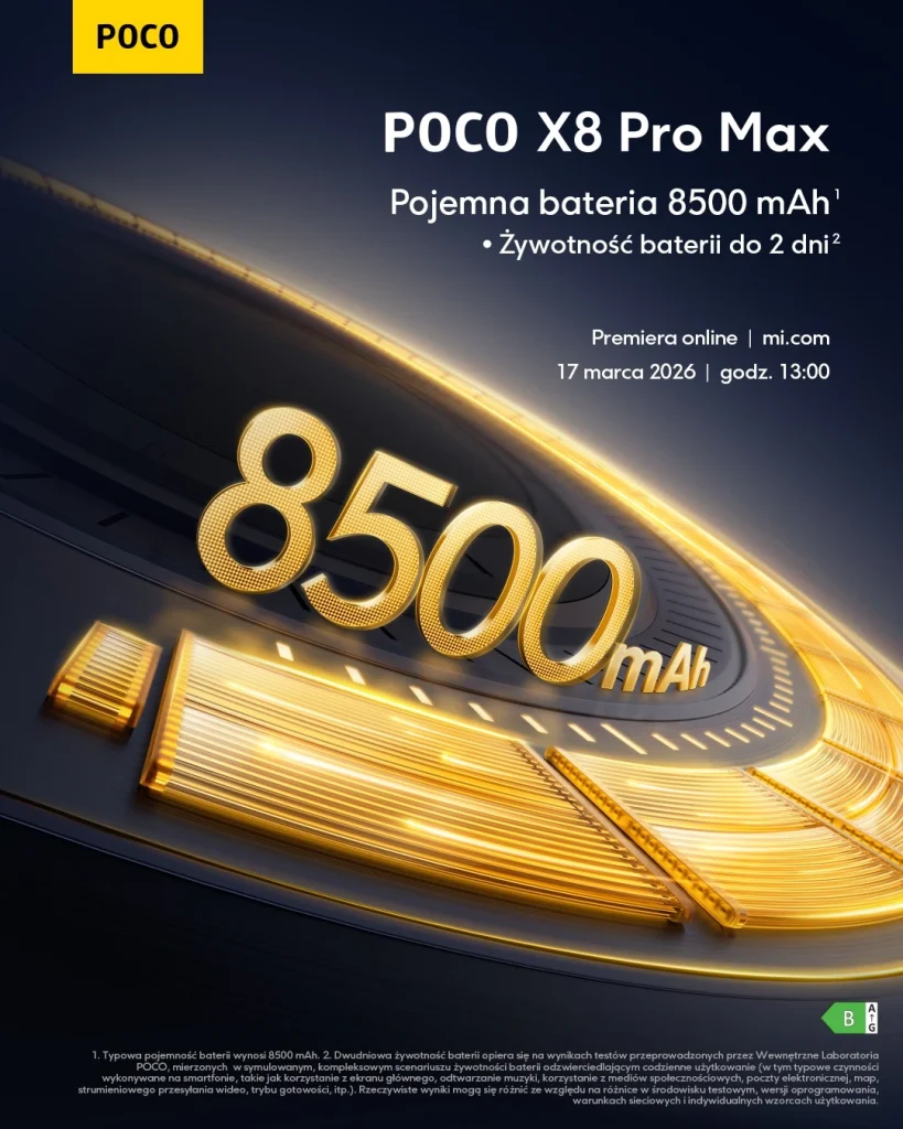 Z informacji dostępnych na oficjalnych stronach producenta wynika, że globalna premiera POCO X8 Pro oraz POCO X8 Pro Max została zaplanowana na 17 marca 2026 roku o godzinie 13:00. Wydarzenie będzie transmitowane online i ma wprowadzić nowe smartfony na rynki międzynarodowe, w tym również do Polski. Równolegle tego samego dnia odbędzie się konferencja przeznaczona dla rynku chińskiego, gdzie urządzenia pojawią się pod nazwą Redmi Turbo 5.