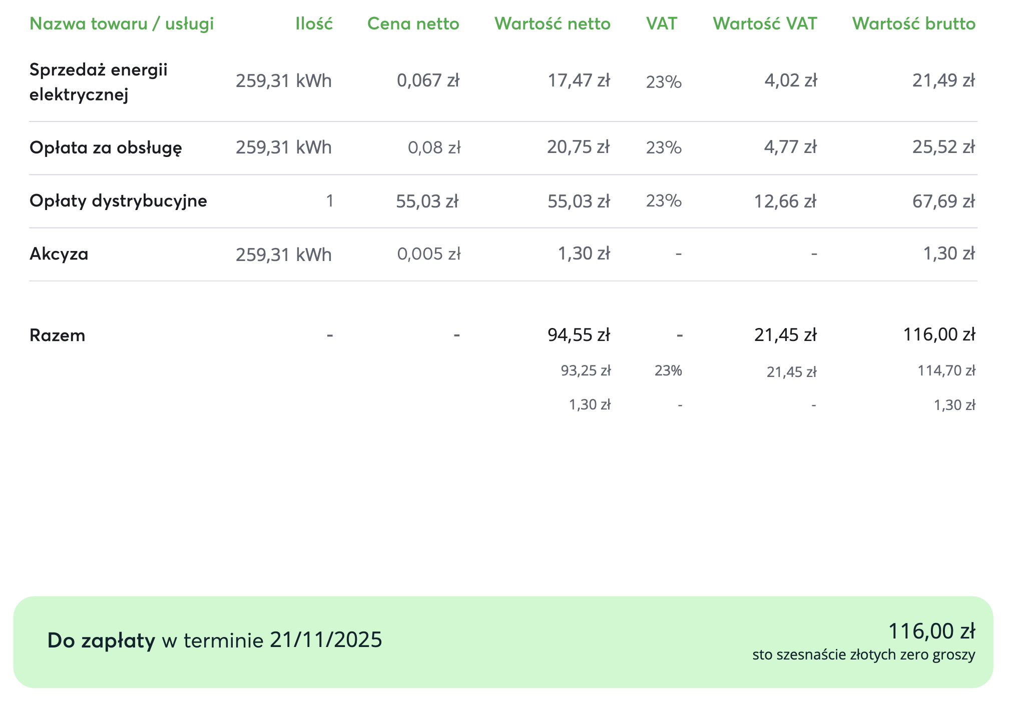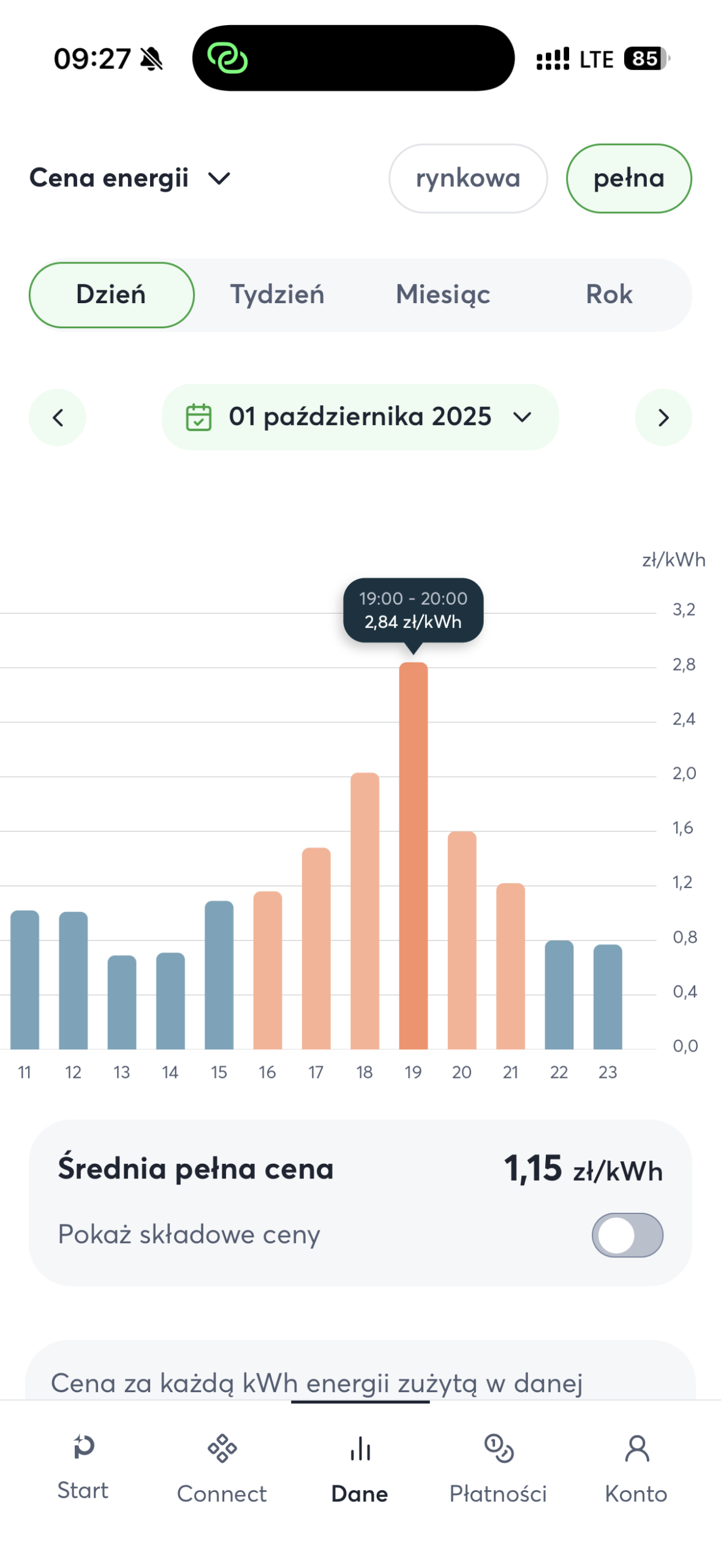 Do rzeczy! Łączny koszt prądu ze wszystkimi opłatami dodatkowymi to 303,15 zł, łączny pobór to 395,36 kWh czyli cena za 1kWh to 0,77 zł. Uważam, że wynik bardzo akceptowalny i poniżej średniej. Jak zawsze parę screenów z cenami poniżej.