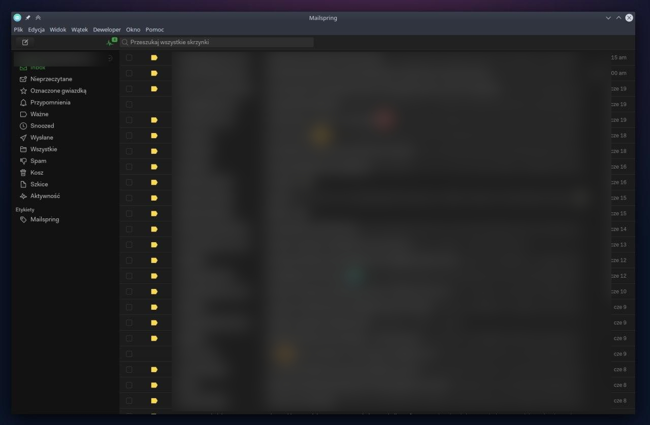Mailspring to kolejna dosyć podstawowa aplikacja bez której ciężko jest mi wyobrazić sobie codzienną pracę. Ale czym jest Mailspring? Myślę, że nazwa wszystko zdradza – jest to klient poczty elektronicznej. Program jest niezwykle prosty w obsłudze, a zarazem pozwala na podpięcie wiele różnych skrzynek pocztowych. Ja na przykład korzystam z wewnętrznej poczty wykorzystującej Gmail i nie miałem żadnego problemu z zalogowaniem się, gdzie inne podobne aplikacje potrzebowały ręcznej konfiguracji.