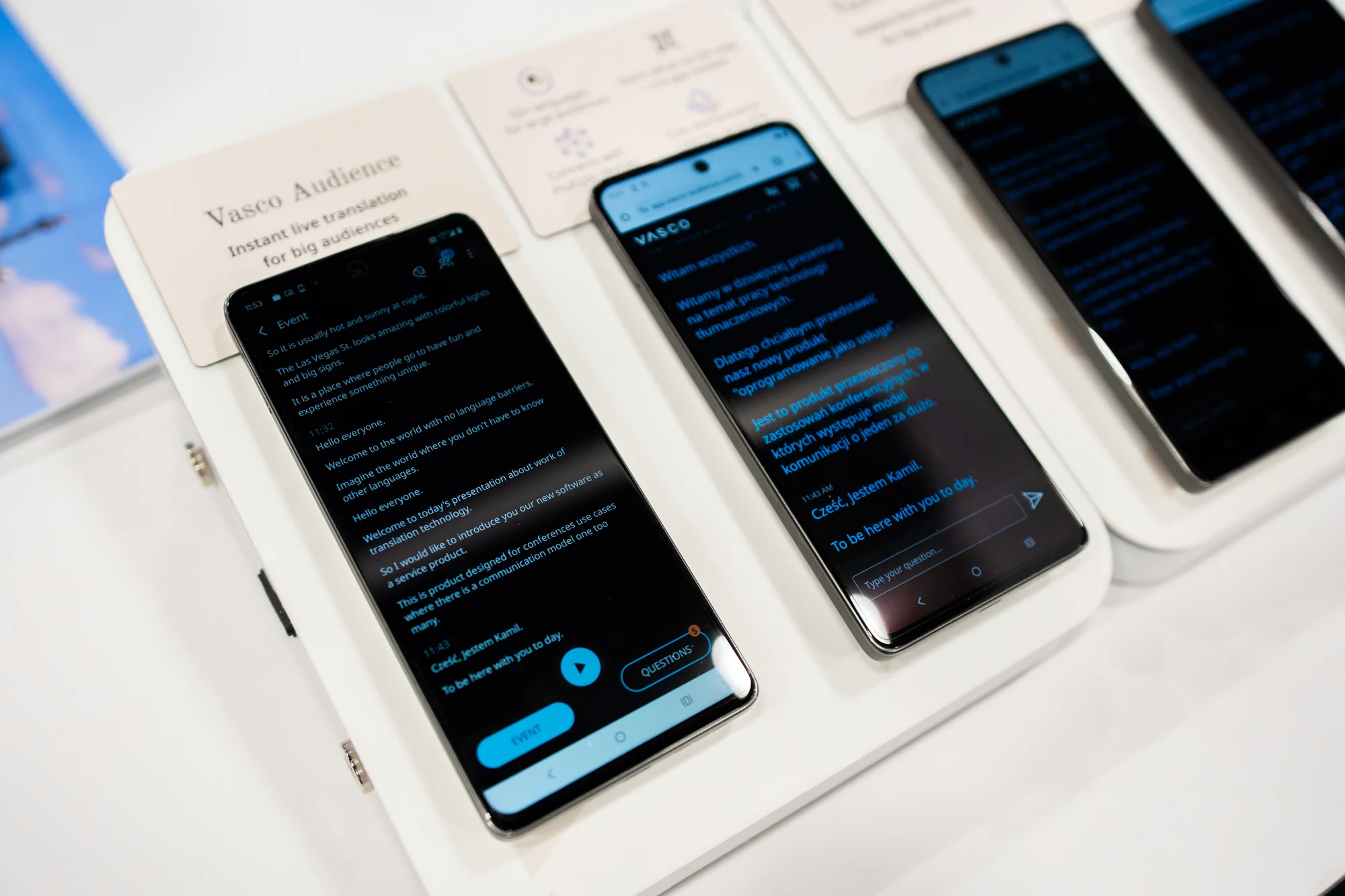Największą premierą VASCO była aplikacja VASCO Audience, dostępna na Androida i iOS, pozwalająca na tłumaczenia „jeden do wielu” w czasie rzeczywistym. To narzędzie stworzone z myślą o konferencjach, szkoleniach i wystąpieniach, gdzie uczestnicy posługują się różnymi językami.