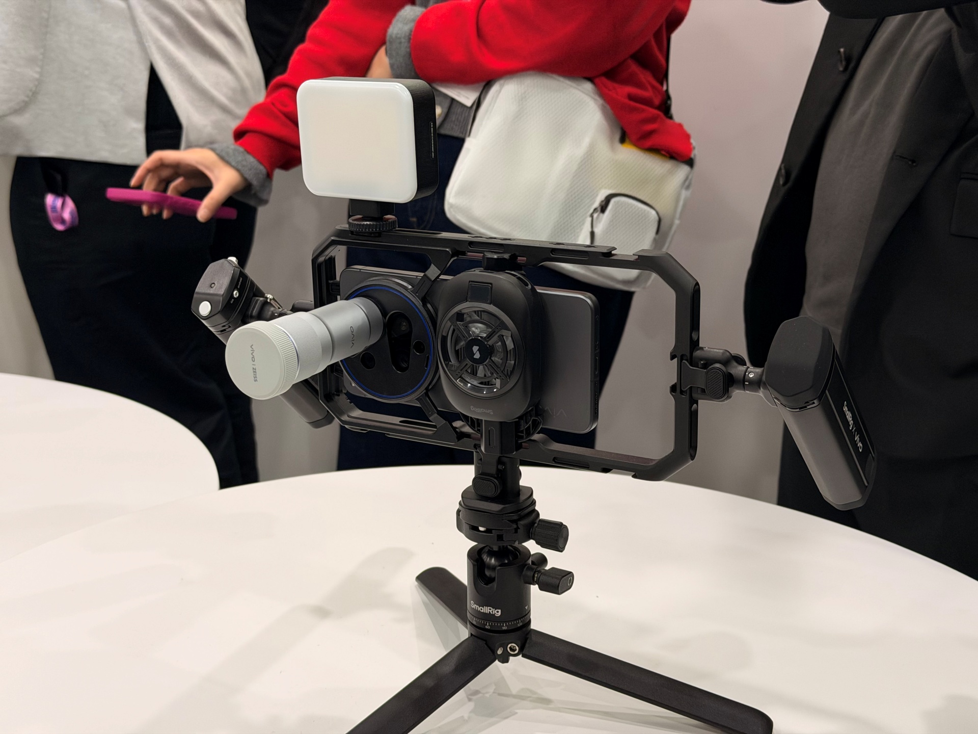 vivo X300 Ultra to nie tylko „lufa” o długości 400 mm. Producent zaprezentował także profesjonalną klatkę operatorską, określaną jako Pro-grade Camera Cage. Konstrukcja została zaprojektowana z myślą o twórcach wideo i oferuje liczne mocowania typu cold shoe oraz porty szybkiego montażu do podłączania lamp, mikrofonów czy dodatkowych akcesoriów. Całość uzupełnia podwójny uchwyt poprawiający stabilność oraz fizyczne przyciski spustu migawki i regulacji zoomu, które mają zapewnić bardziej intuicyjną kontrolę nad kadrem.