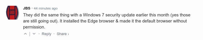Co ciekawe, spotkałem się z komentarzem, że ostatnia aktualizacja Windowsa 7 również wprowadziła niechcianą aplikację w postaci przeglądarki internetowej Microsoft Edge. Mało tego, uaktualnienie nadpisało ustawienia systemowe i zmieniło domyślną przeglądarkę internetową właśnie na Edge’a.