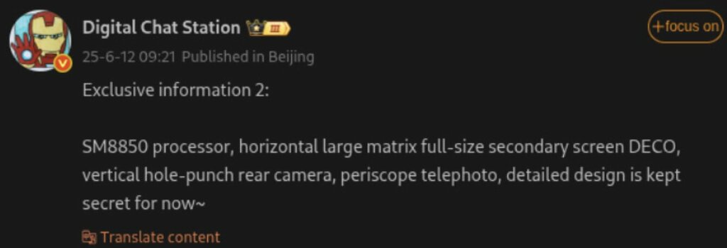 Za przeciekami na temat Xiaomi 16 Pro Max stoi dobrze znany w branży technologicznej bloger Digital Chat Station. Choć nie podał on bezpośrednio nazwy modelu, to szczegóły wpisu, takie jak m.in. odniesienie do flagowego układu Snapdragon SM8850, czyli nadchodzącego Snapdragon 8 Elite oraz projektu z „dużym poziomym DECO z wyświetlaczem” jasno sugerują, że chodzi właśnie o ten model.