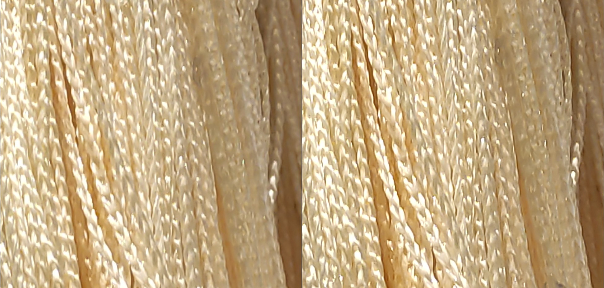 Główna matryca może poszczycić się rozdzielczością 48 Mpix, jednak standardowo zdjęcia są robione w 12 Mpix. Możemy poprosić telefon o cyknięcie w trybie 48 Mpix, co też uczyniłem. Poniżej porównanie w dużym przybliżeniu i przy dobrym świetle. Widać delikatną przewagę w ilości szczegółów po stronie prawej.