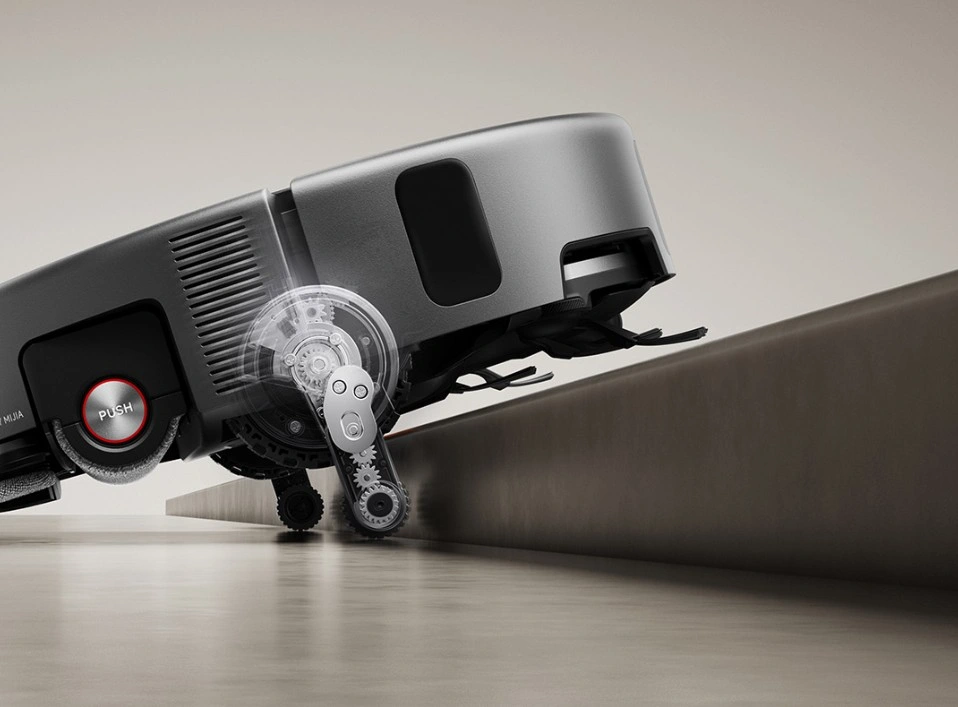 Konstrukcja robota została rozbudowana o elementy, które wyróżniają go na tle konkurencji. Mowa m.in. o systemie „bionicznych nóg”, które umożliwiają pokonywanie przeszkód o wysokości do 6 cm. To wynik zdecydowanie powyżej typowych możliwości robotów sprzątających, które zazwyczaj kończą pracę na progach o połowę niższych. Co istotne, mimo tej zaawansowanej mechaniki sprzęt zachowuje stosunkowo niską sylwetkę, ponieważ jego wysokość wynosi około 9,3 cm, co pozwala wjechać pod większość mebli.