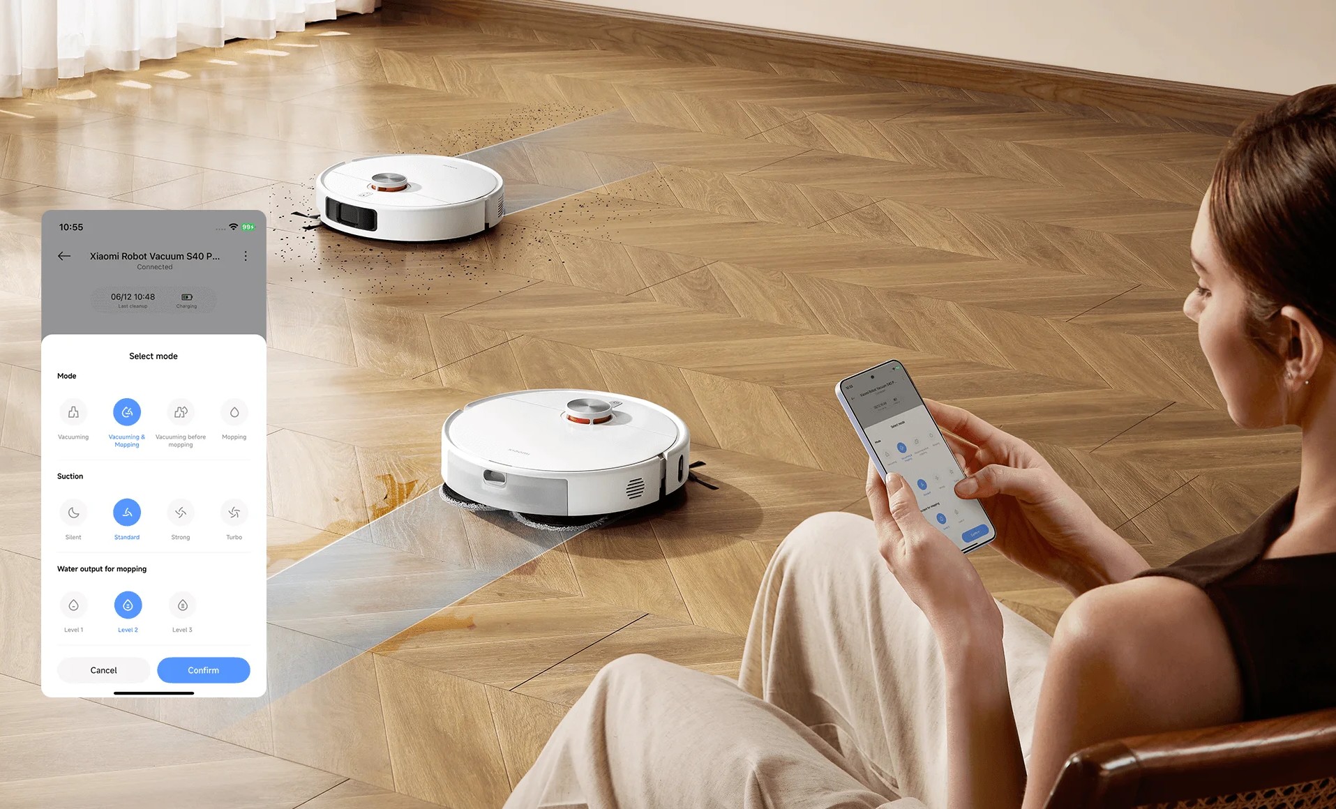 Xiaomi Robot Vacuum S40 Pro współpracuje oczywiście z mobilną aplikacją Xiaomi Home. Użytkownik może ustawiać w niej harmonogramy, personalizować tryby sprzątania, zarządzać mapami czy zdalnie kontrolować robota. Dostępna jest również obsługa głosowa przez Asystenta Google i Amazon Alexa, co dla wielu użytkowników może być sporym atutem.