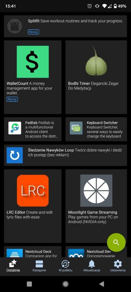 F-Droid to alternatywny sklep z aplikacjami na urządzenia z Androidem. Co ważne, oprogramowanie, które w nim znajdziemy, jest wolne i otwartoźródłowe. Mało tego, jako odbiorcy mamy możliwość wspierania twórców aplikacji wysyłając darowizny, a o wszelkich niepożądanych funkcjach jesteśmy informowani jeszcze przed instalacją. Oczywiście F-Droid pozwala na aktualizowanie zainstalowanego oprogramowania, jak i na przeglądanie chociażby specjalne toplisty.